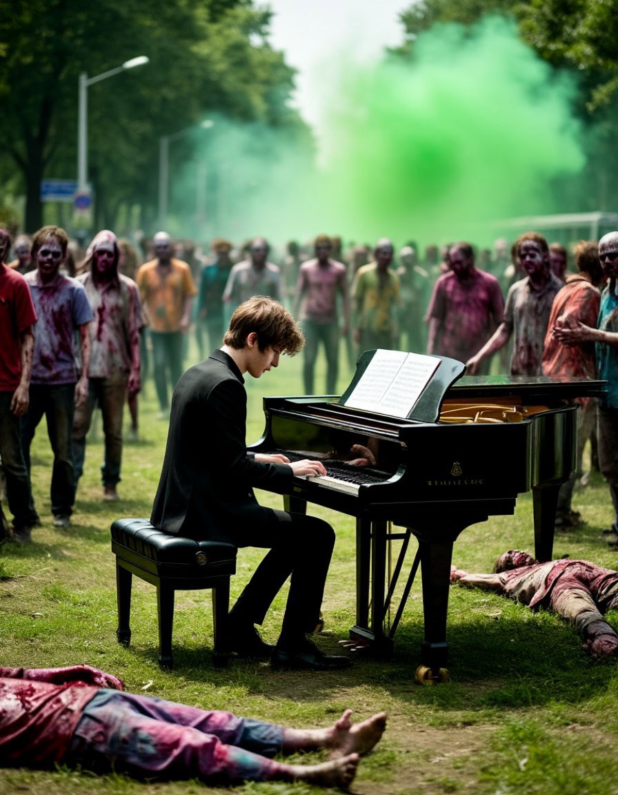 Таинственные бактерии, которых нанесло от речки Гнилушки, заражают людей и превращают их в зомби. Чтобы спасти оставшихся, Тёма играет "Вальс Очищение", который как раз только что выучил. https://author.today/post/733089