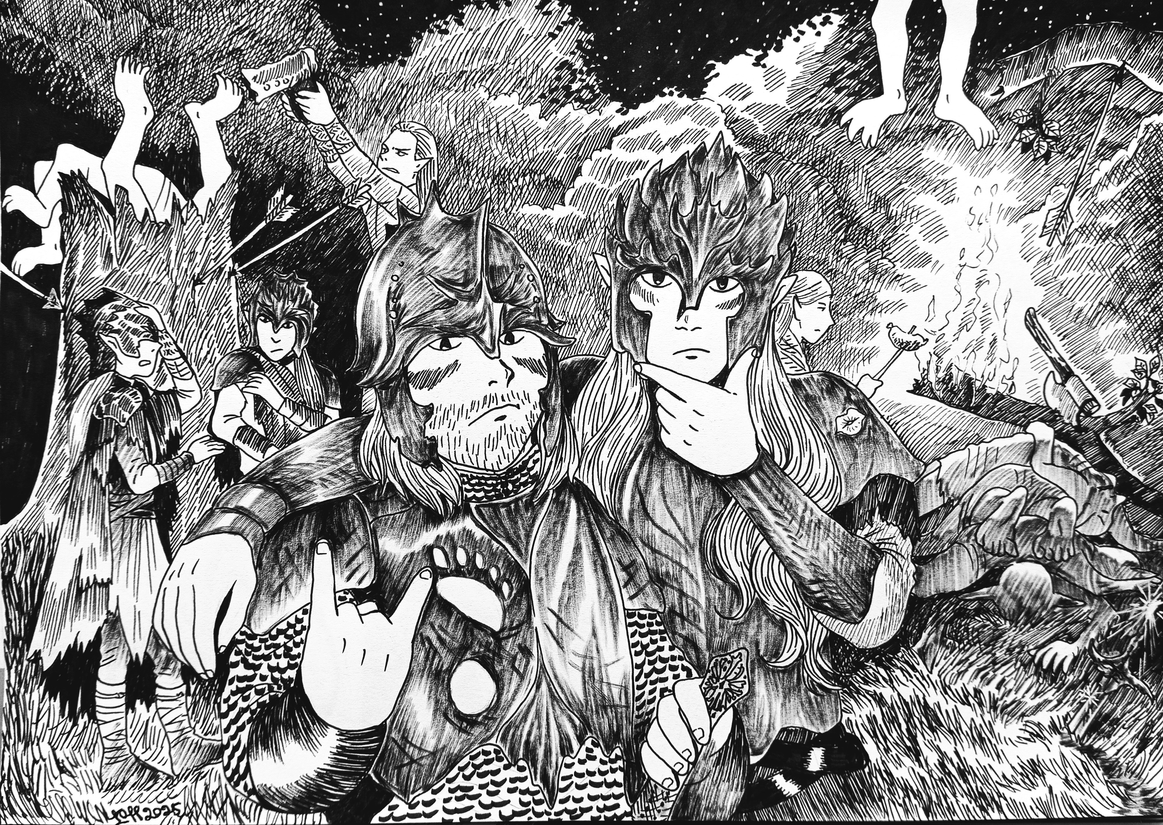 Гоп-компания Автор: Margery Eos Берен и Финрод с отрядом на пути за сильмариллом (отсыпали люлей оркам и отобрали их шмотьё для маскировки). сильмариллион 40 Пожаловаться