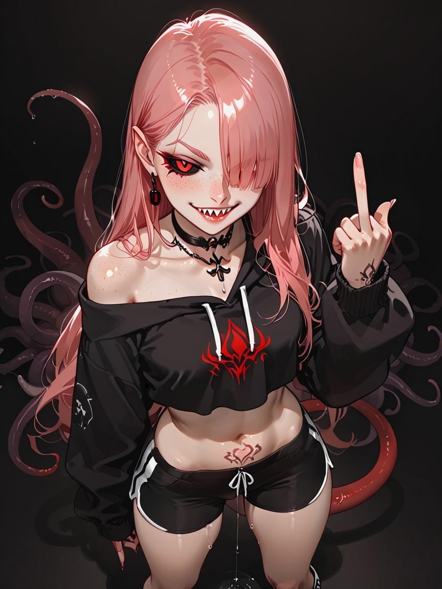 Тентакли — тян. Автор: MistorGus иллюстрация, нейросеть, арт, фэнтези, девушка, демон, компьютерная графика, магия, персонаж 65 18+ Пожаловаться
