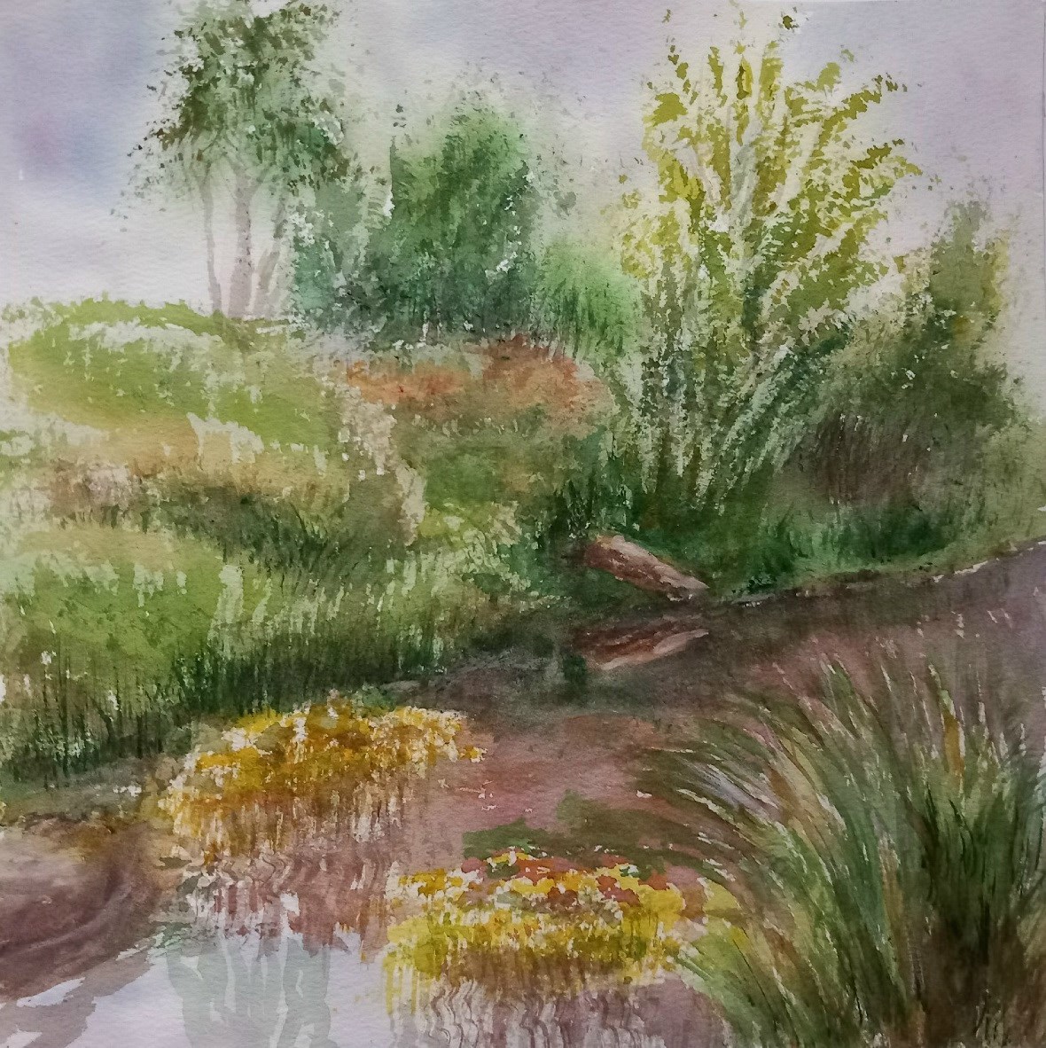 Зелёное лето Автор: Ольга Левонович Онлайн-курс "Цветовидение". Акварель на хлопковой бумаге 20х20. акварель 73 Пожаловаться
