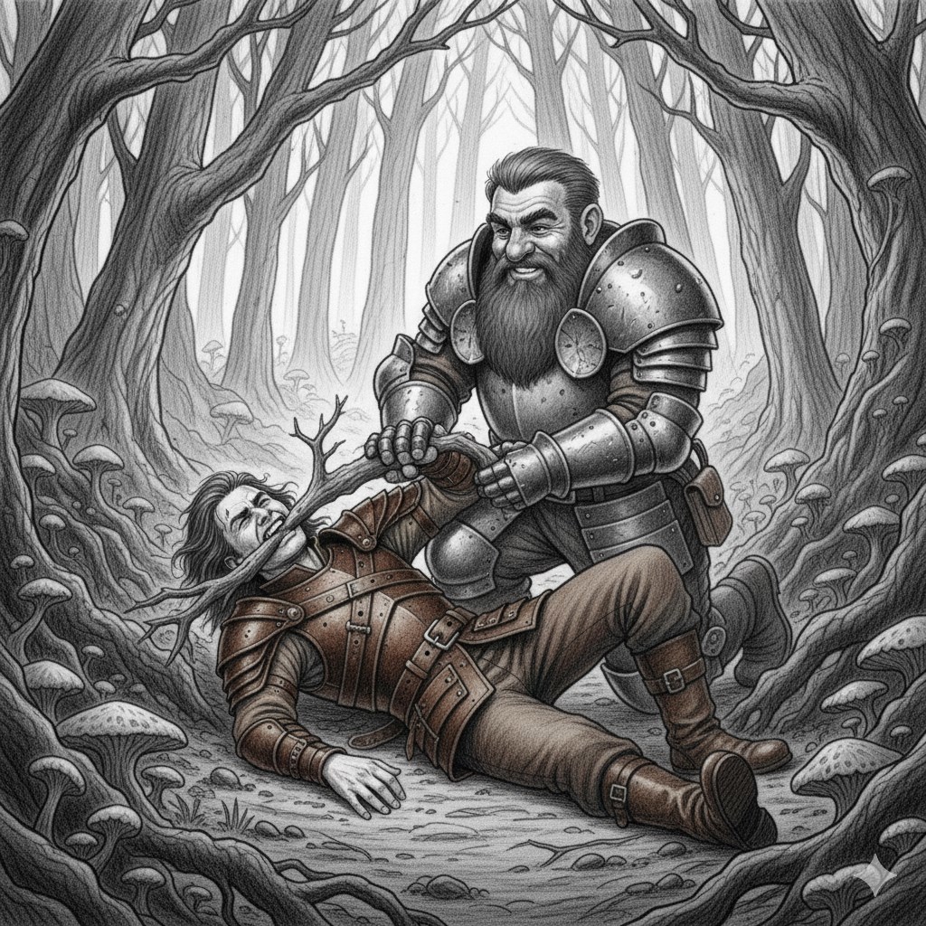 Хардгрим сунул мне в зубы какую-то ветку, которую я машинально закусил, следуя указаниям. Стальная хватка гнома легла мне на плечо и предплечье, и раздался щелчок.