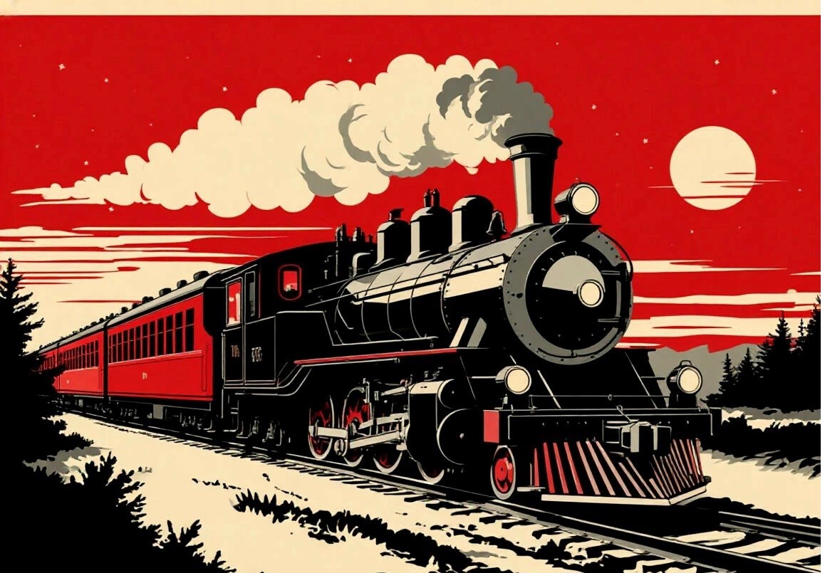 Поезд идёт на Восток Автор: Александр Самойлов Афиша к фильму "Поезд идёт на Восток". графика, рисунок, арт, компьютерная графика, нейросеть 55 Пожаловаться