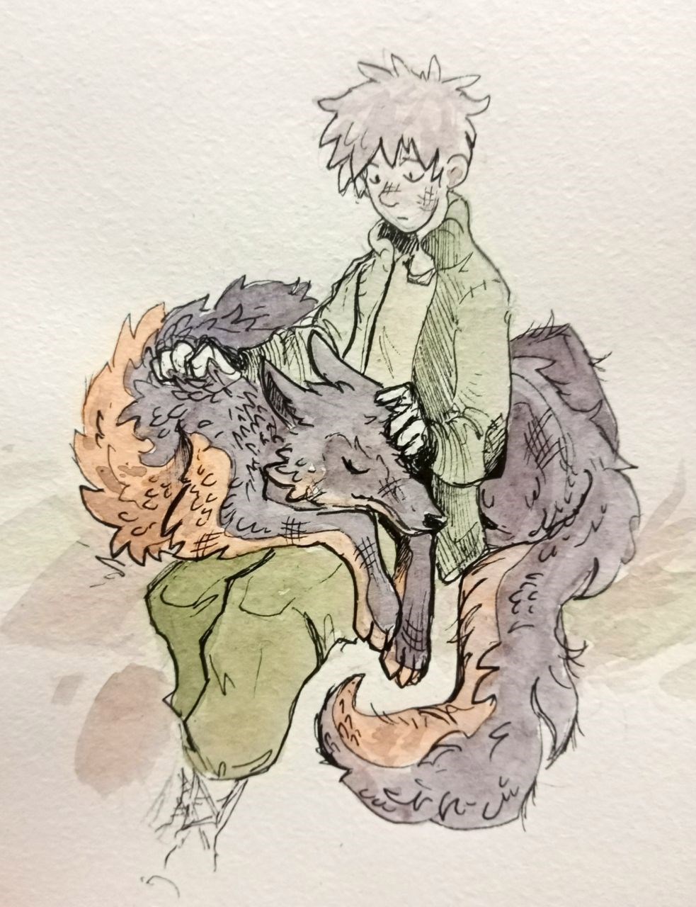Устал Автор: Ворона Иногда всем нам нужно вздремнутьПес больше похож на ласку анатомически, но так и задумывалось персонажи, иллюстрация, фэнтези 30 Пожаловаться