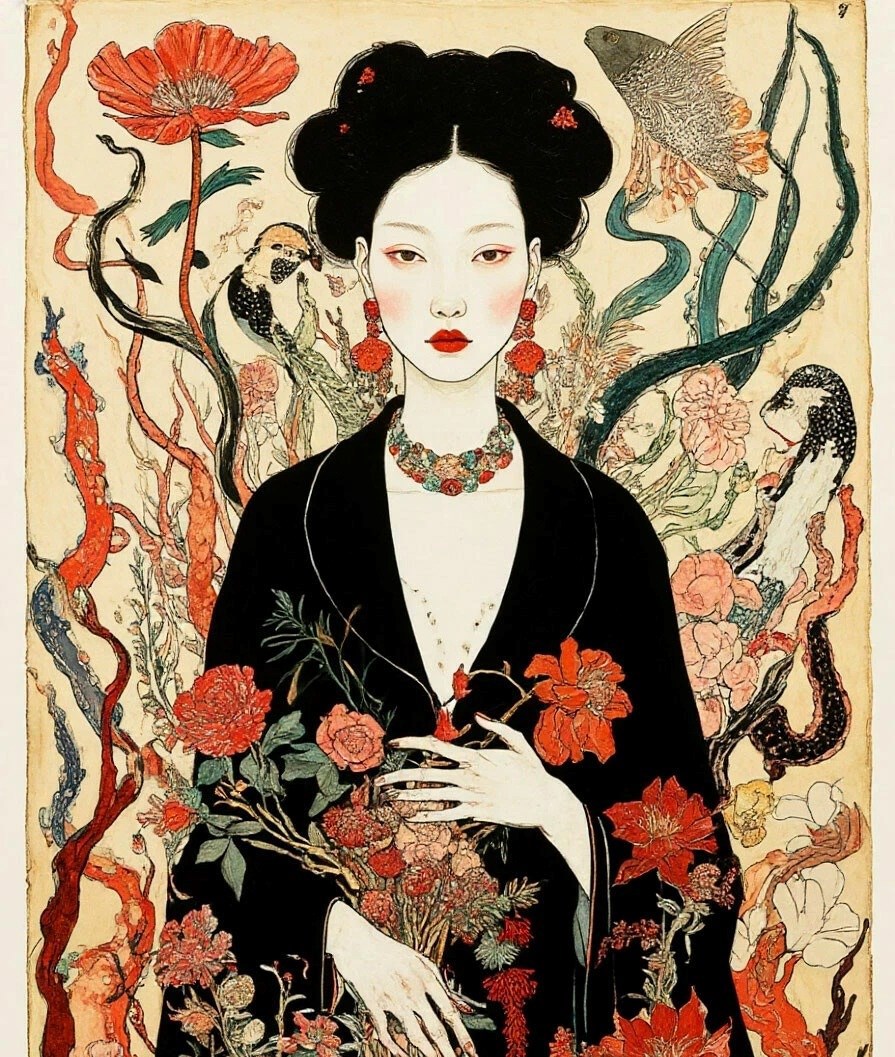 В окружении цветов Автор: Александр Самойлов графика, рисунок, арт, компьютерная графика, нейросеть 67 Пожаловаться