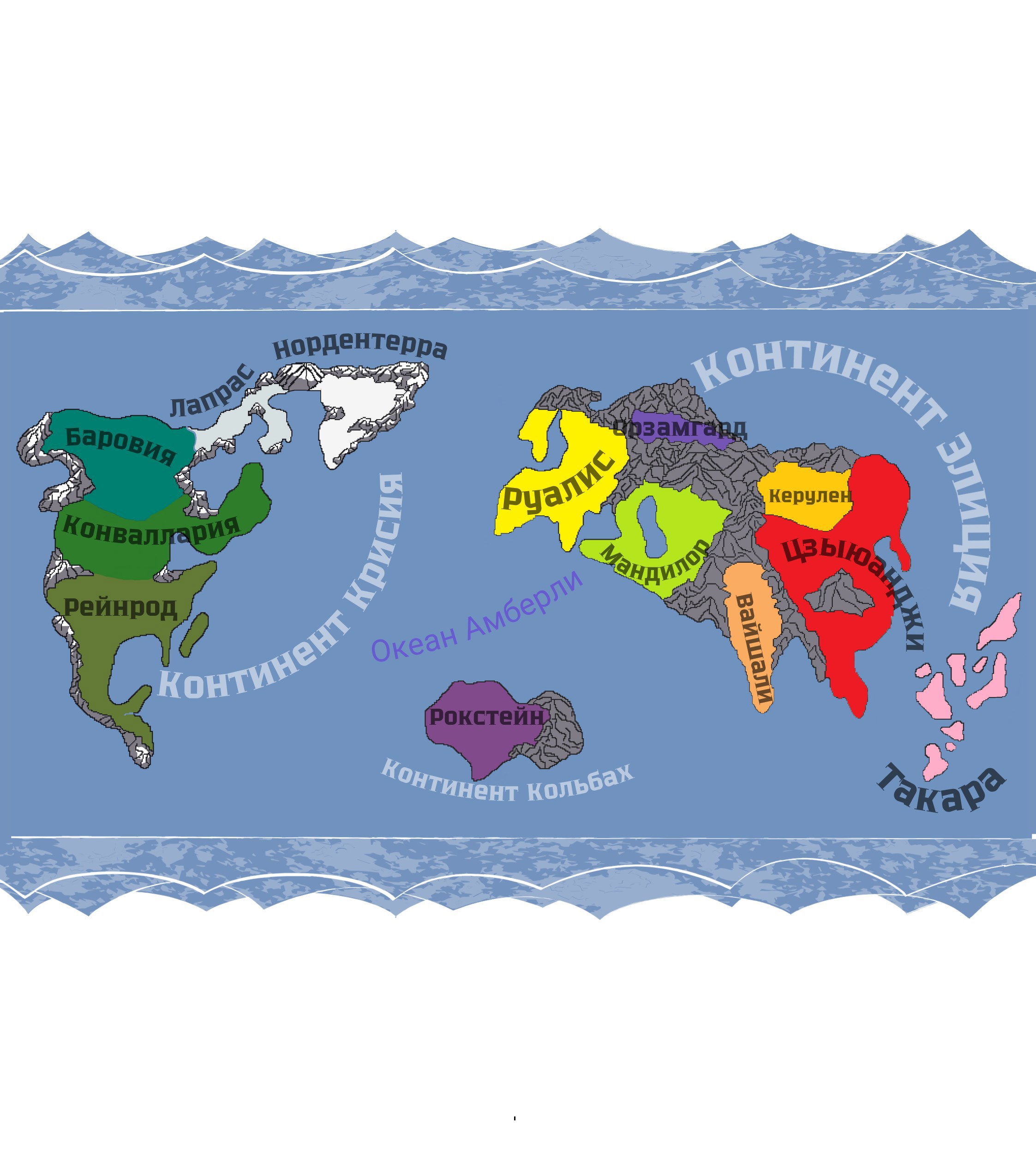 Остальные королевства уже оригинальные, пусть и вдохновлены реальными. Так Такара, это, как ни очевидно, Япония. Цзыюанджи - Китай. Рейнрод много впитал от Германии, а Руалис - копия Франции. Рассказать могу много, но сделаю это уже не в описании карты, а в рассказах.
