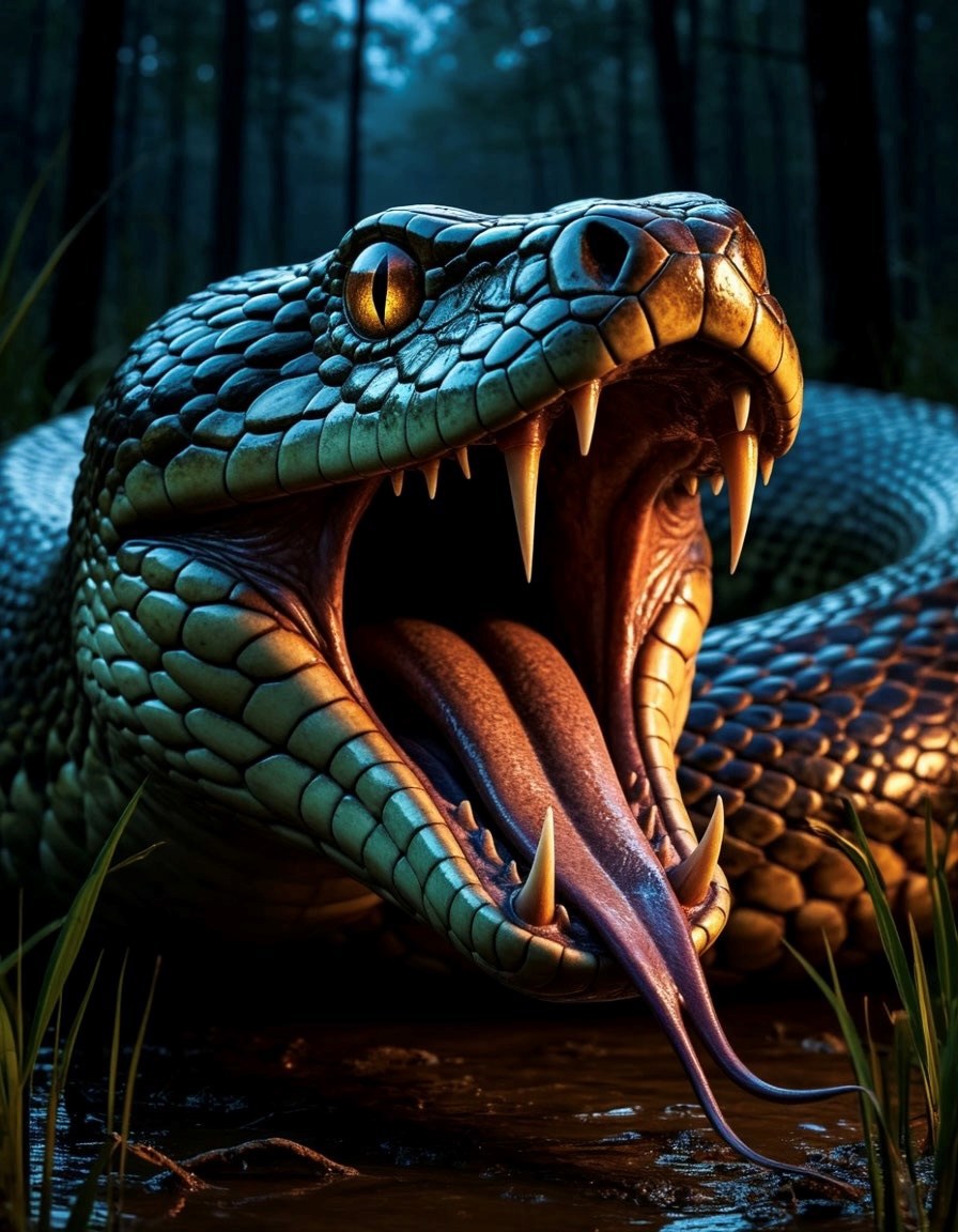 Нивертон бросился прочь, едва видя очертания деревьев, но что-то заставило его обернуться. Быть может прекратившийся рев или отсутствие глухого удара о воду громадной мертвой змеи. В мерклом лунном свете все еще виднелся силуэт василиска, который и не думал таять в болотном тумане. Змей закинул голову и резко тряхнул ей. Алебарда грохнулась на землю и проехалась к ногам Нивертона, вспахав огромную рытвину. Змей оскалился, мол «попытайся лучше» и кинулся на окаменевшего стража.