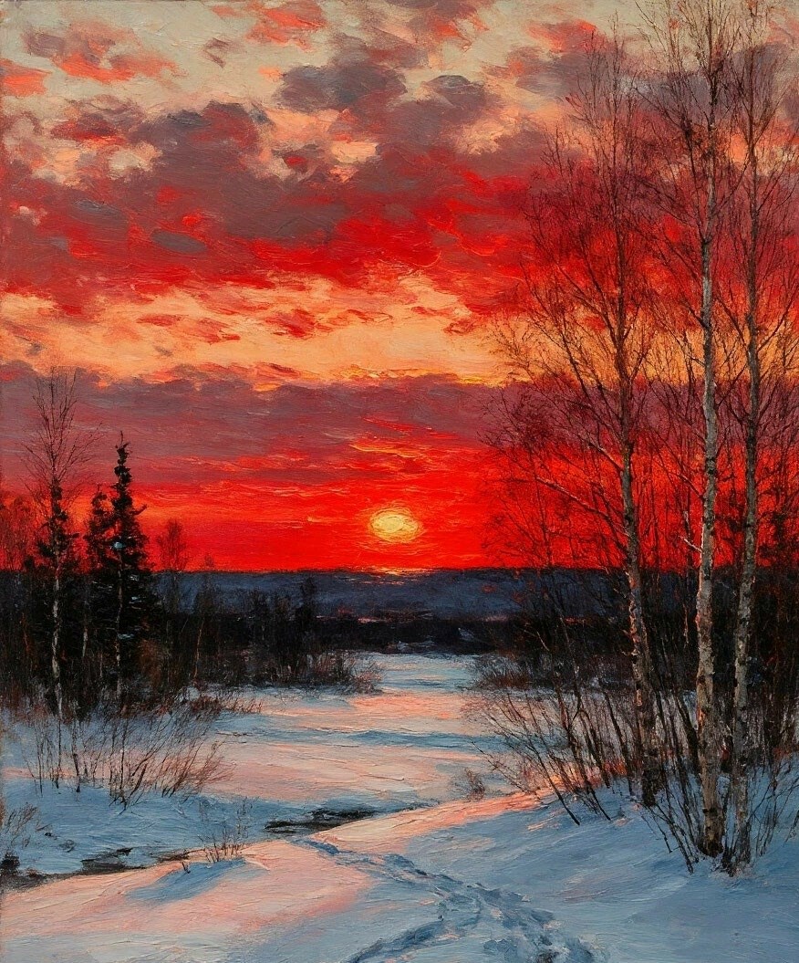 Зимний закат Автор: Александр Самойлов графика, рисунок, компьютерная графика, нейросеть, арт 38 Пожаловаться