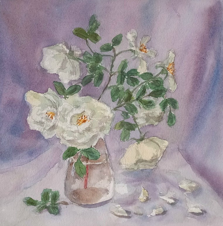 Веточка шиповника Автор: Ольга Левонович БЕЛЫЙ ШИПОВНИКНаписала акварель по давнему снимку. Онлайн-курс "Цветовидение". Акварель на хлопковой бумаге 20х20. акварель 46 Пожаловаться