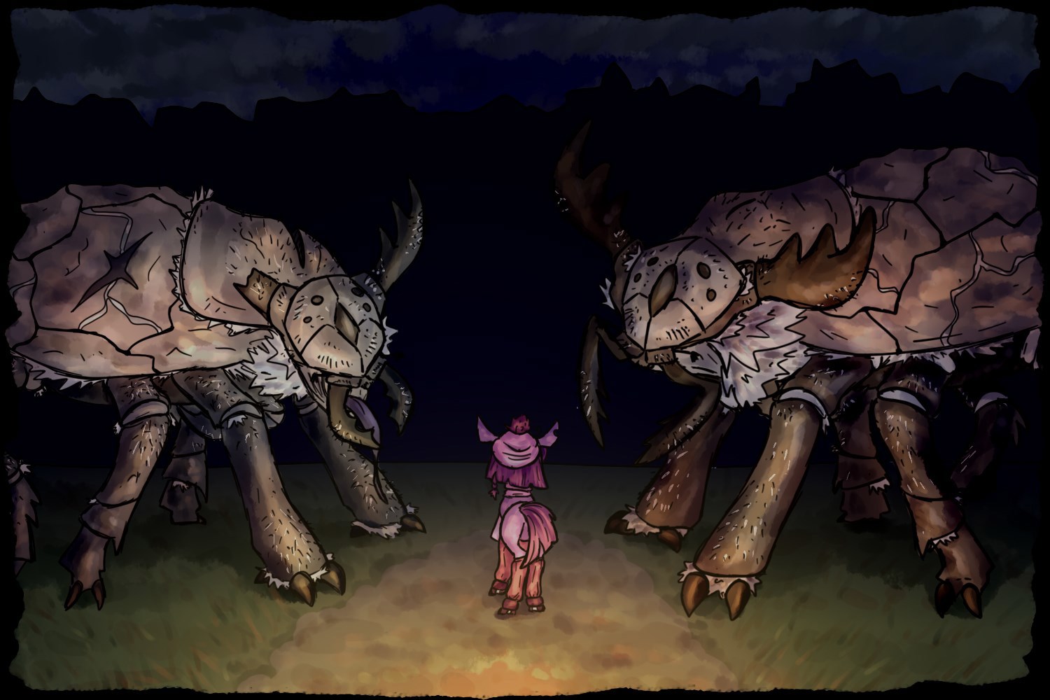 Прочь Автор: Клапка Сова Иллюстрация к одиннадцатой главе "Во мраке" фика Снежное Зерно (https://author.today/work/486054). монстры, магия, авторский арт, мои персонажи, компьютерная графика, персонажи, другой мир, иллюстрация, фэнтези 27 Пожаловаться