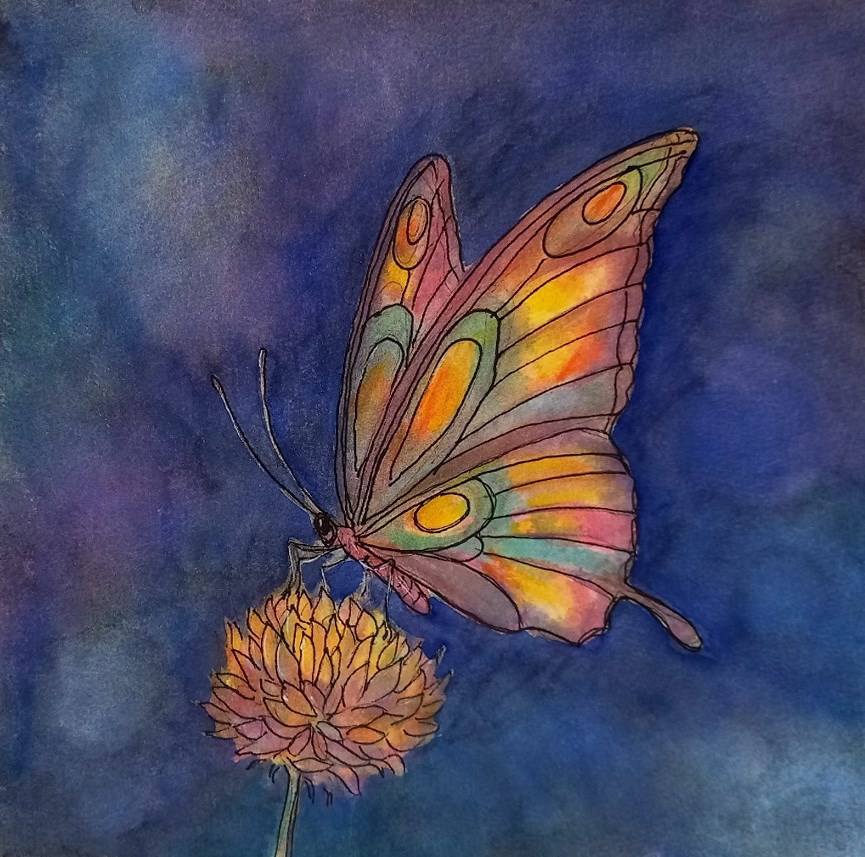 Бабочка Автор: Ольга Левонович Декоративная картинка. Акварель на хлопковой бумаге 20х20. чёрный линнер, акварель 26 Пожаловаться