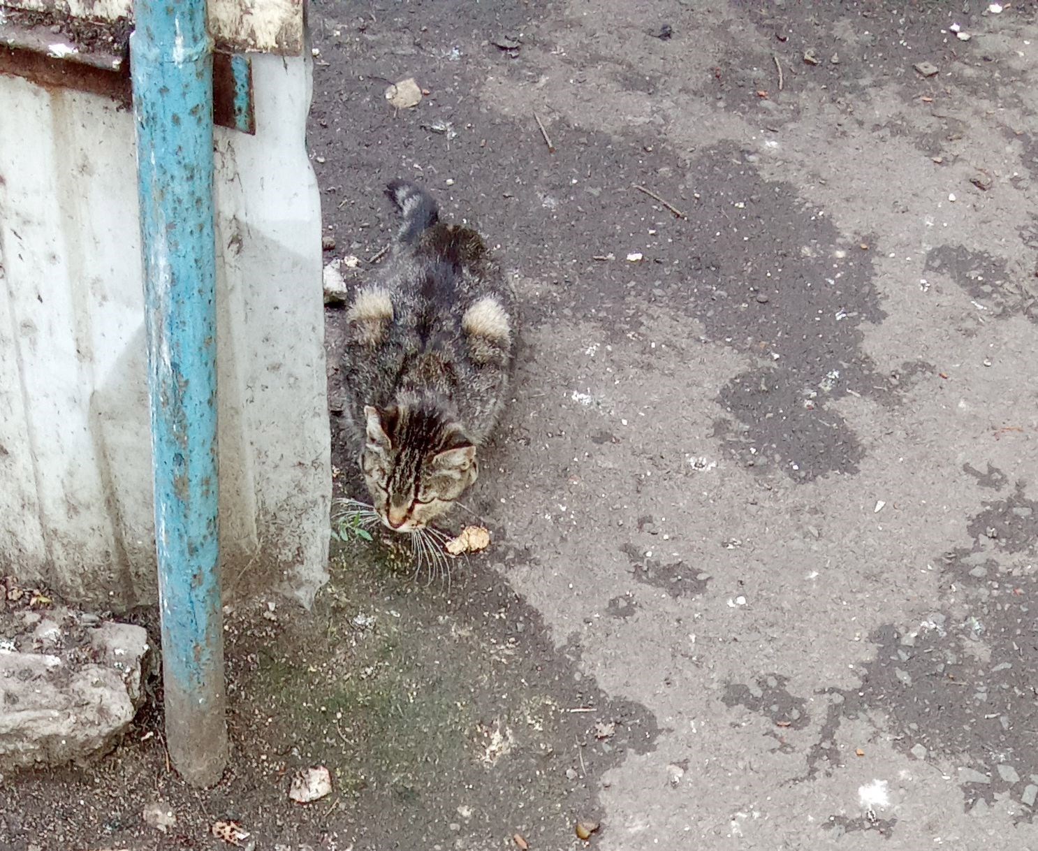 Это не Ушастик, это другая кошка с улицы, которую кормили недалеко от этой помойки. Никто не протирал ее миски и не переживал, что скоро зима. Я передавала и ей пакетик Феликса.