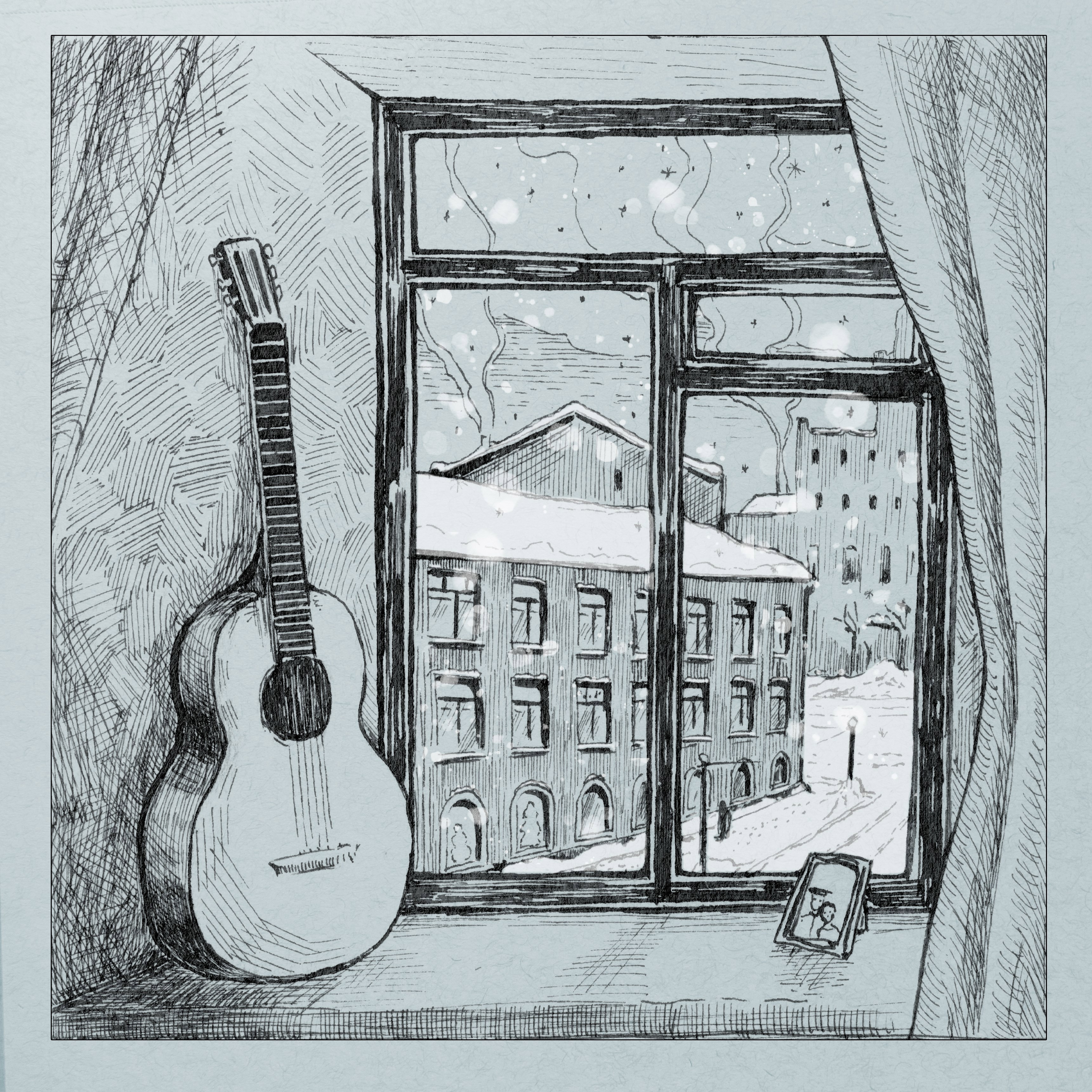 Иллюстрация создавалась, как обложка к песне "Приход зимы", написанной моим дядей. На яндекс.музыке её можно найти именно с этой картинкой. А внутри этой иллюстрации зашифрована ещё одна песня Александра Обидина "Старая фотография". На яндексе её нет, зато есть клип на ютубе. В нём использованы фотографии из семейного архива.
