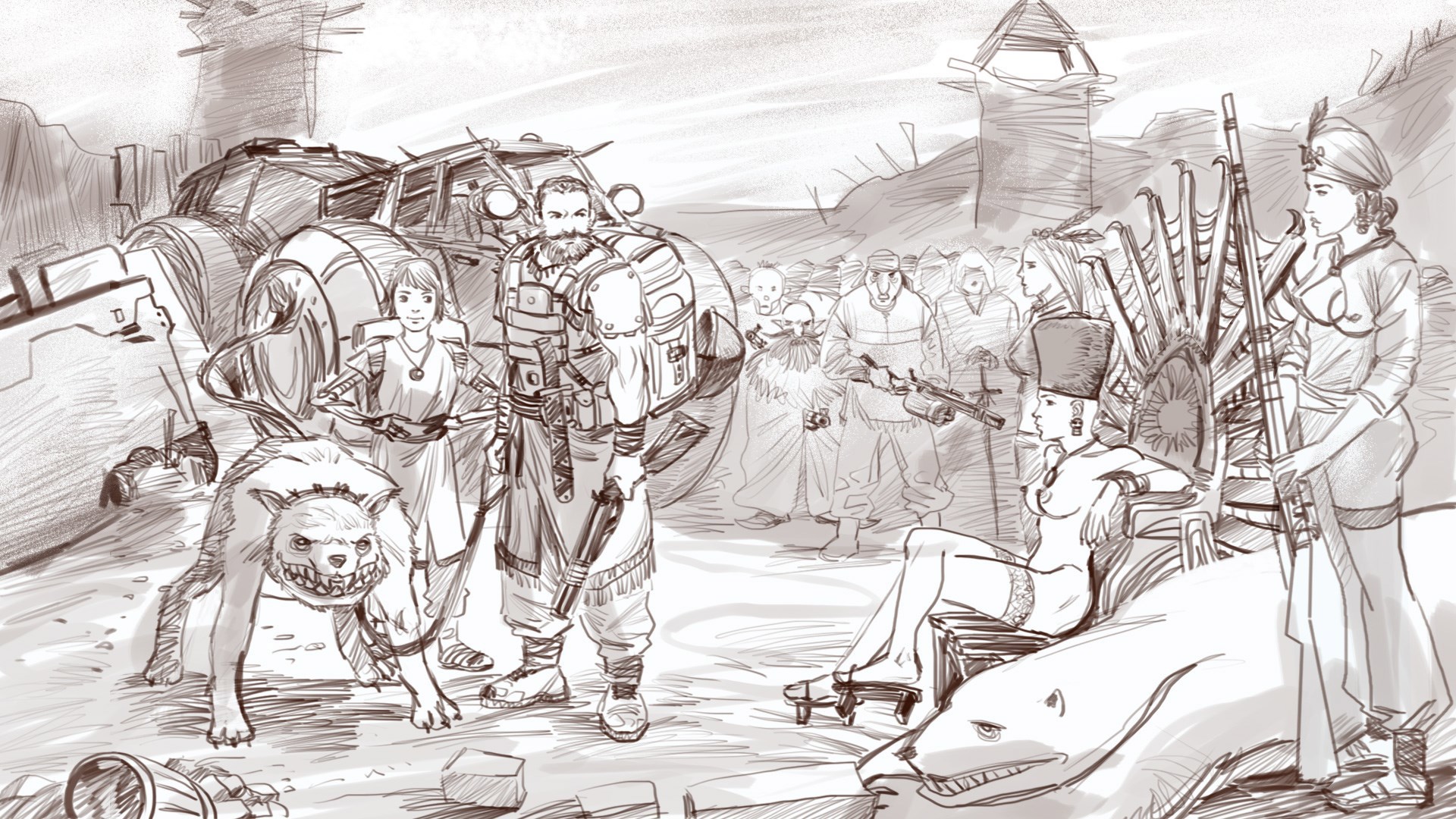 Постап Автор: Александр Ерёмин Скетч от нечего делать. иллюстрация, рисунок, персонажи, постапокалипсис 42 18+ Пожаловаться