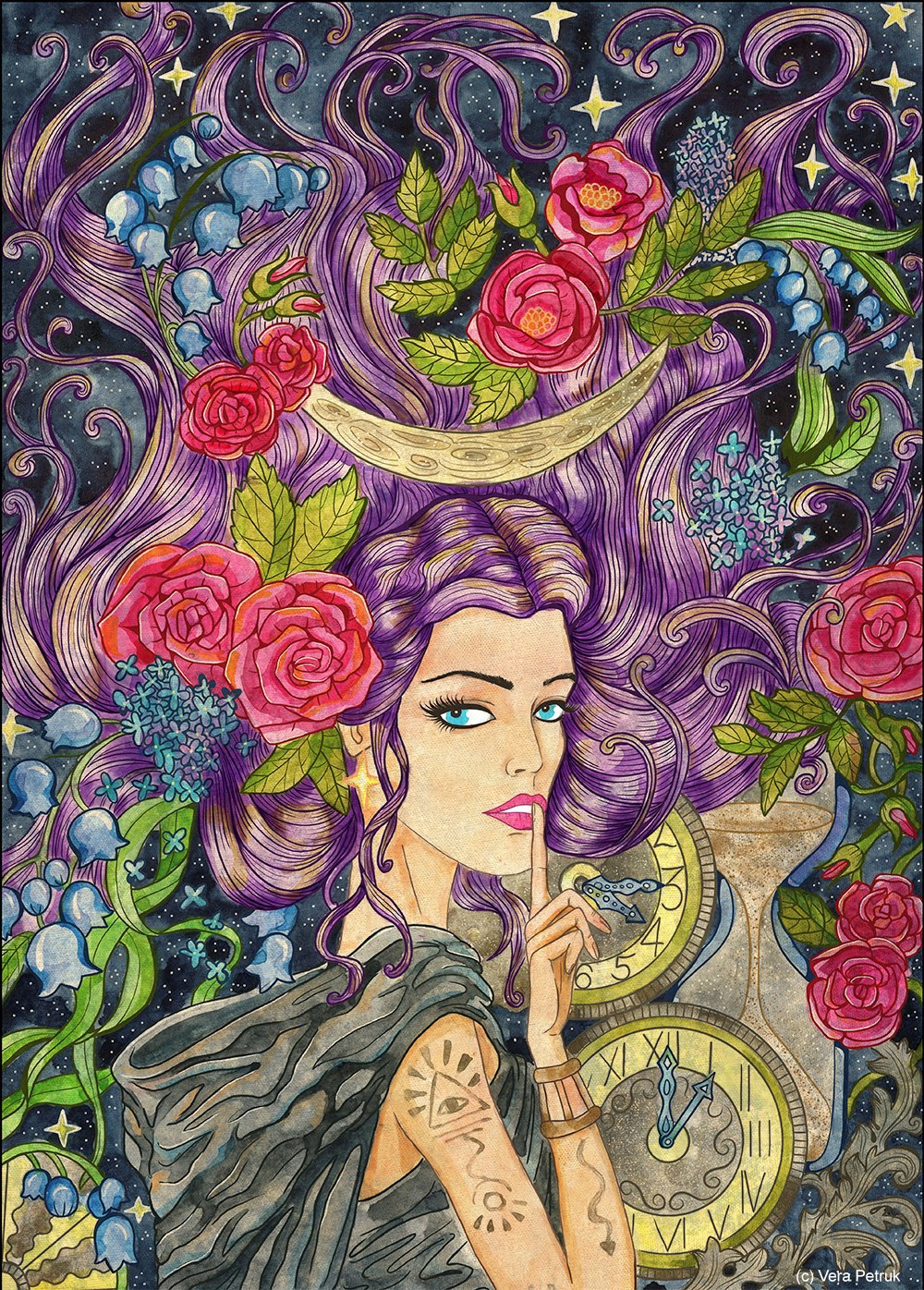 Иллюстрация для карты "Жрица" к новому Таро. Акварель, линеры.