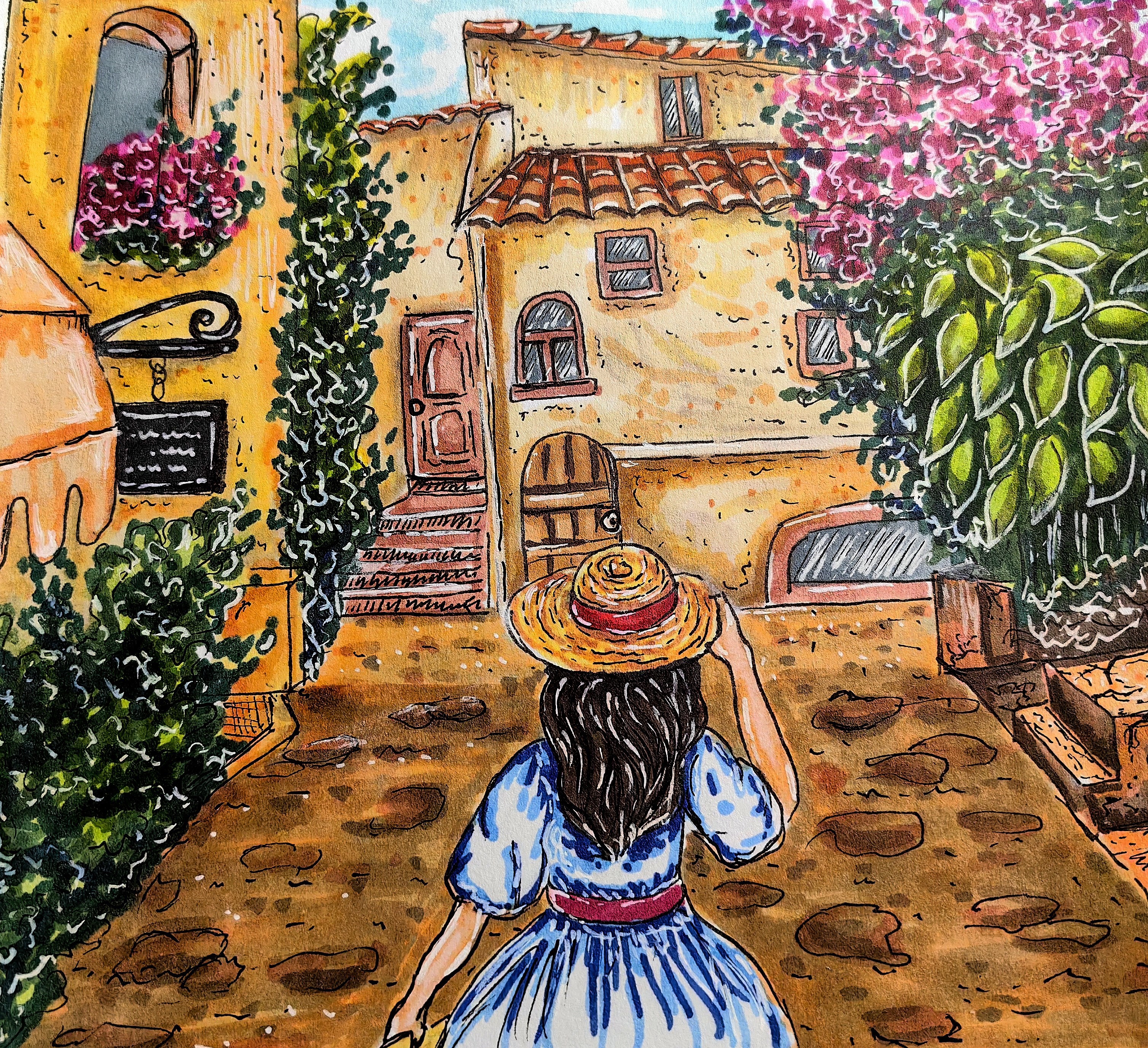 Давно что-то я вас не баловала своими традиционными рисунками все ди да диджита, вот полюбуйтесь, какая девочка у меня получилось на итальянских улицах...