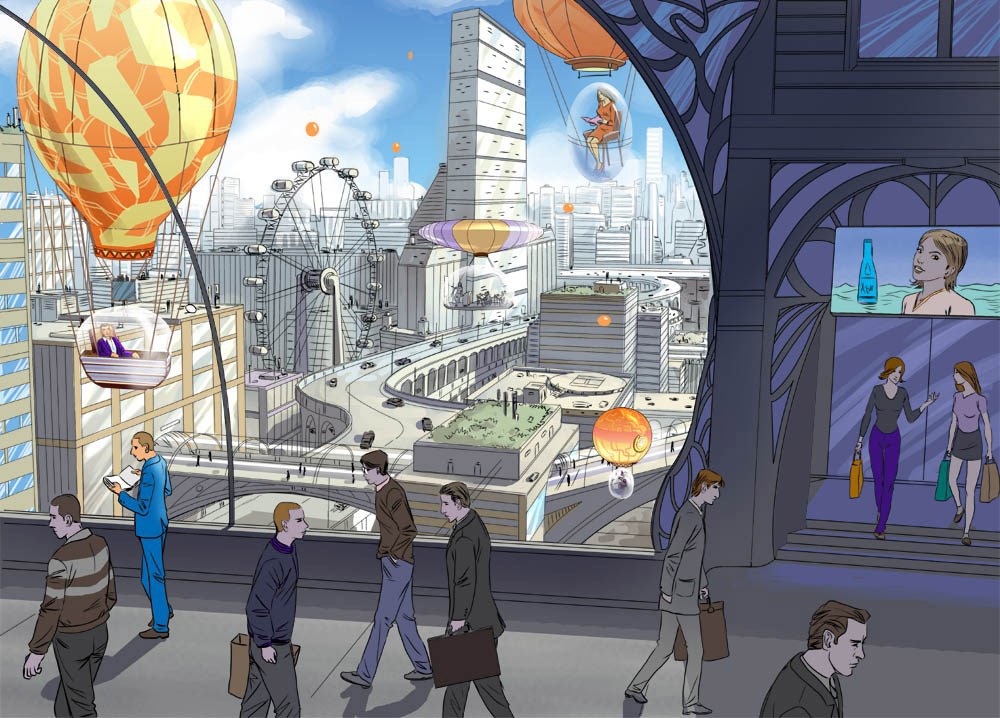 Много лет назад. Я это делал к какой то бизнес книжке. Офис конторы которая хотела книжку располагался в москве сити. Я тогда понял, что чтобы доехать наверх надо было выйти на каком то промежуточном этаже и перейти в другой лифт. В фирме мне этого не объяснили. Где то я вышел и ходил неприкаянный взад вперед. А там еще нумерация офисов по непонятной системе. В конце концов я вломился в какую то пафосную контору, где всё убранство украшали белые колонны с золотыми узорами... Там охрана мне всё разяснила.... )))))))))) (приключения художника)