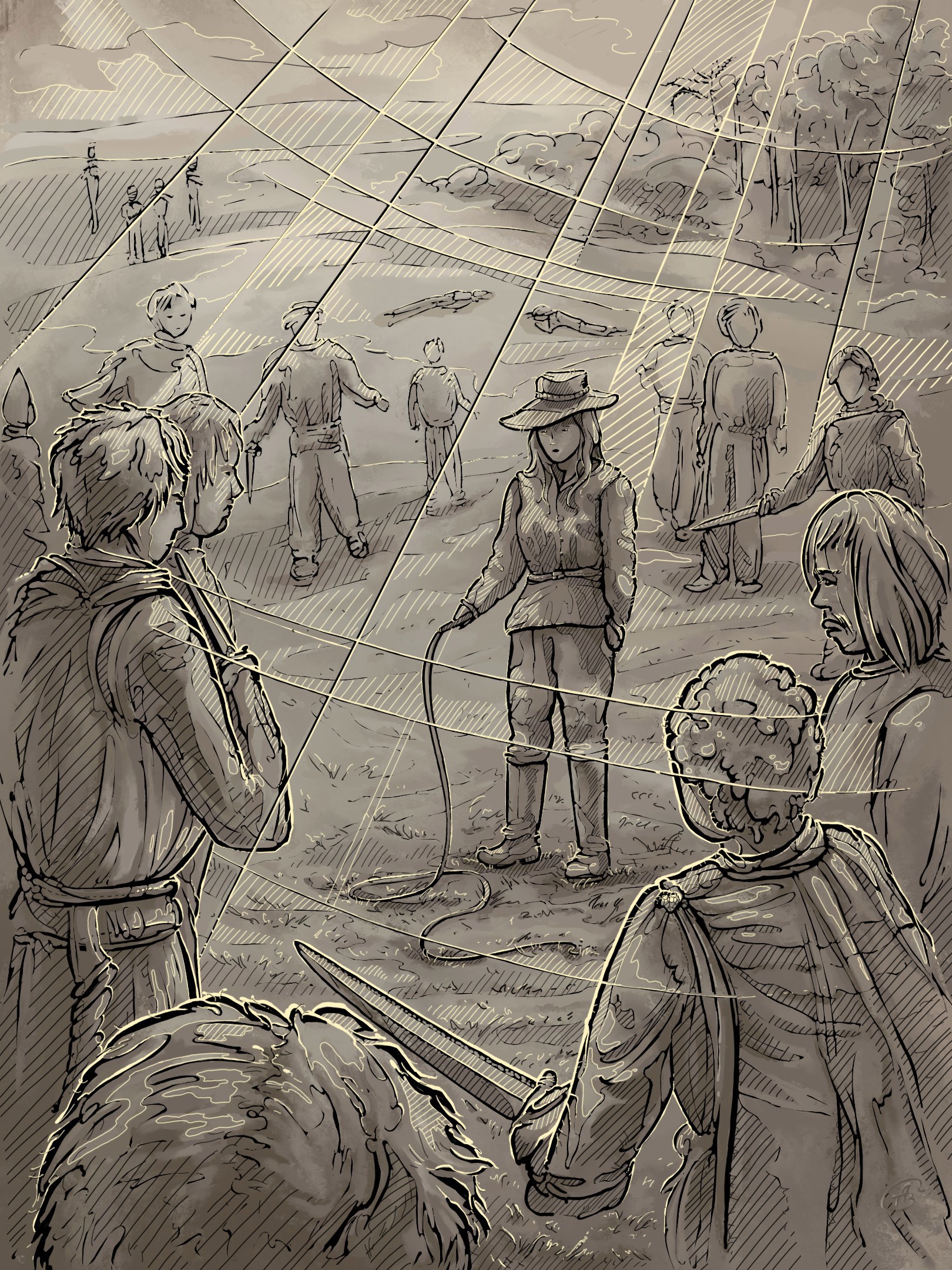 Ехидно оскалилась, не став отвечать и пригнулась. За его спиной раздался хлёсткий свист, наёмники ринулись на встречу, вскидывая оружие и целясь в мою маленькую персону. Не прекращая скалиться, и иногда хохоча, наверное, нервное, слегка повела кистью, направляя плеть в сторону приближающихся смельчаков.