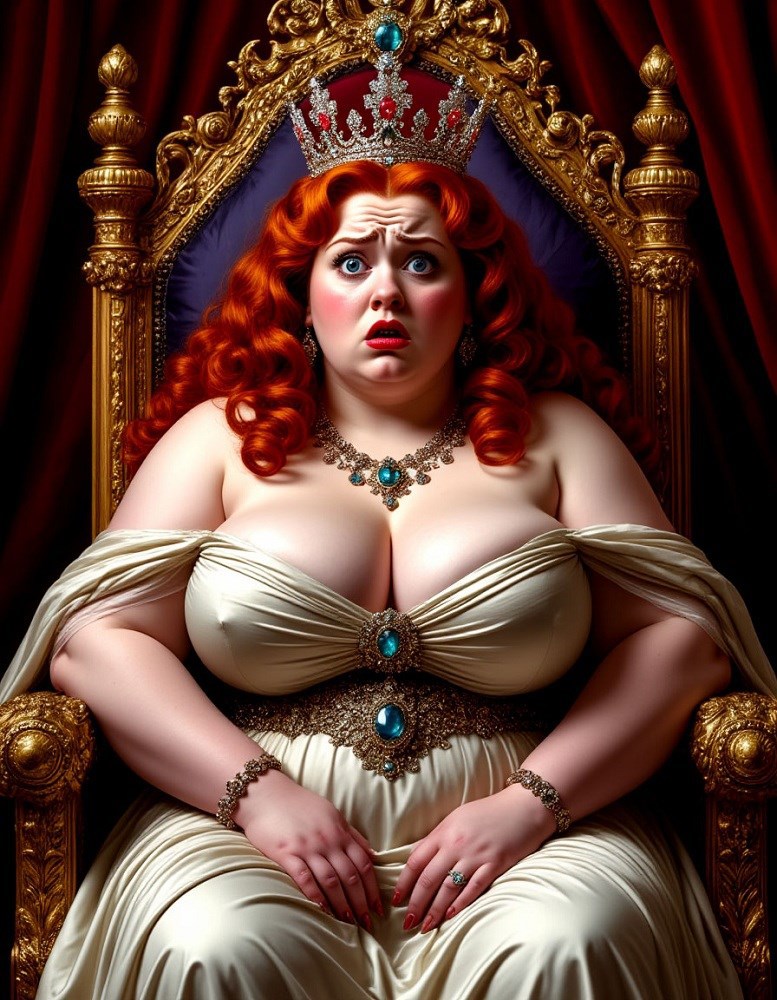 Жирная рыжая королева Автор: Алекс-Александр авторский персонаж, женщина, нейросеть, принцесса, сиськи 13 Пожаловаться