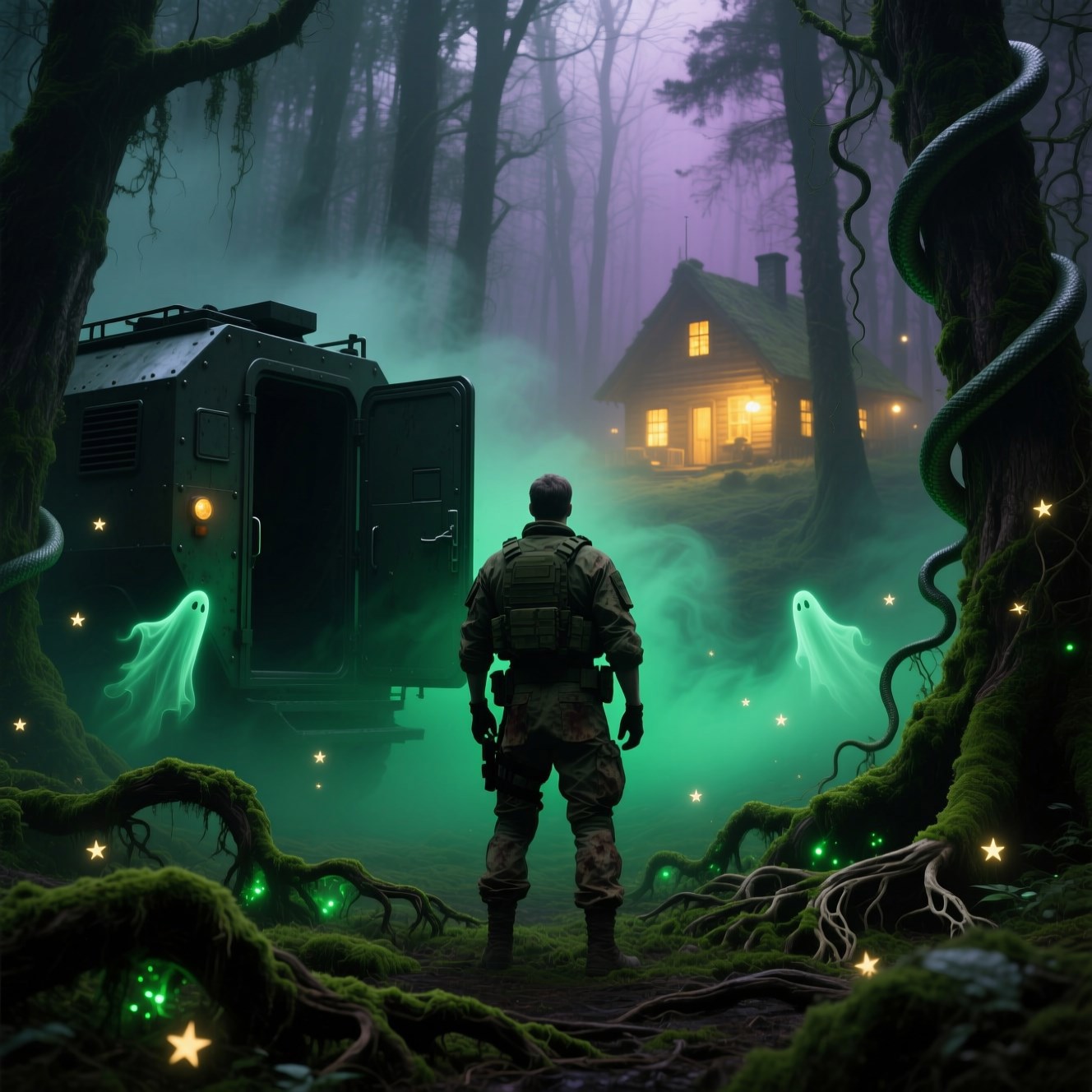 — Помимо очевидного... — дядя Жора хмыкнул, поворачивая руль. — С психикой там играют, как малые дети с кубиками. Только кубики эти — твои мысли, страхи, воспоминания. Потихоньку, что и не заметишь, мозги выключают. Ласково так, как свет в комнате. У нас классификация чёткая, по полочкам. Гипноз и очарование: глянешь в глаза какому-нибудь болотному огоньку, услышишь голосок — и всё, ты уже не ты. Идёшь за ним, куда позовут, а сам счастливый, будто на свидание спешишь. Навязывание эмоций: накатит волна ужаса ни с чего, такая ледяная, что руки сами опустятся, или тоски смертной — всё серо, бессмысленно, хочется сесть на корягу и плакать, забыв, кто ты. Бывало, опытные мужики, прошедшие огонь и воду, так и сидели, рыдали, как младенцы. А бывает наоборот — эйфория, беспечность, «да всё хорошо!». Человек снимет тёплую одежду в лютый мороз, потому что жарко, и идёт обниматься с валуном со светящимся мхом. Манипуляция памятью — вообще классика. Вышел из леса и не помнишь, как тебя зовут, зачем пришёл. А в голове чужие воспоминания всплывают, яркие, будто ты здесь сто лет прожил. Голоса и видения — чтоб с пути сбить. Ребёнок плачет в чаще, жена зовёт, вдали огонёк хаты манит. Идёшь на него — а там не хата.