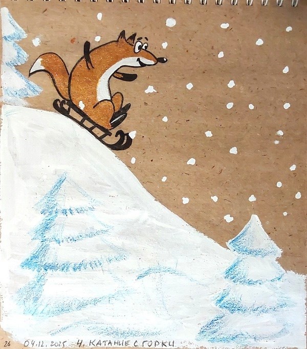 Декабрь-арт №4. Катание с горки Автор: Зоряна Заряница зима, иллюстрация, новый год, рисунок 15 Пожаловаться