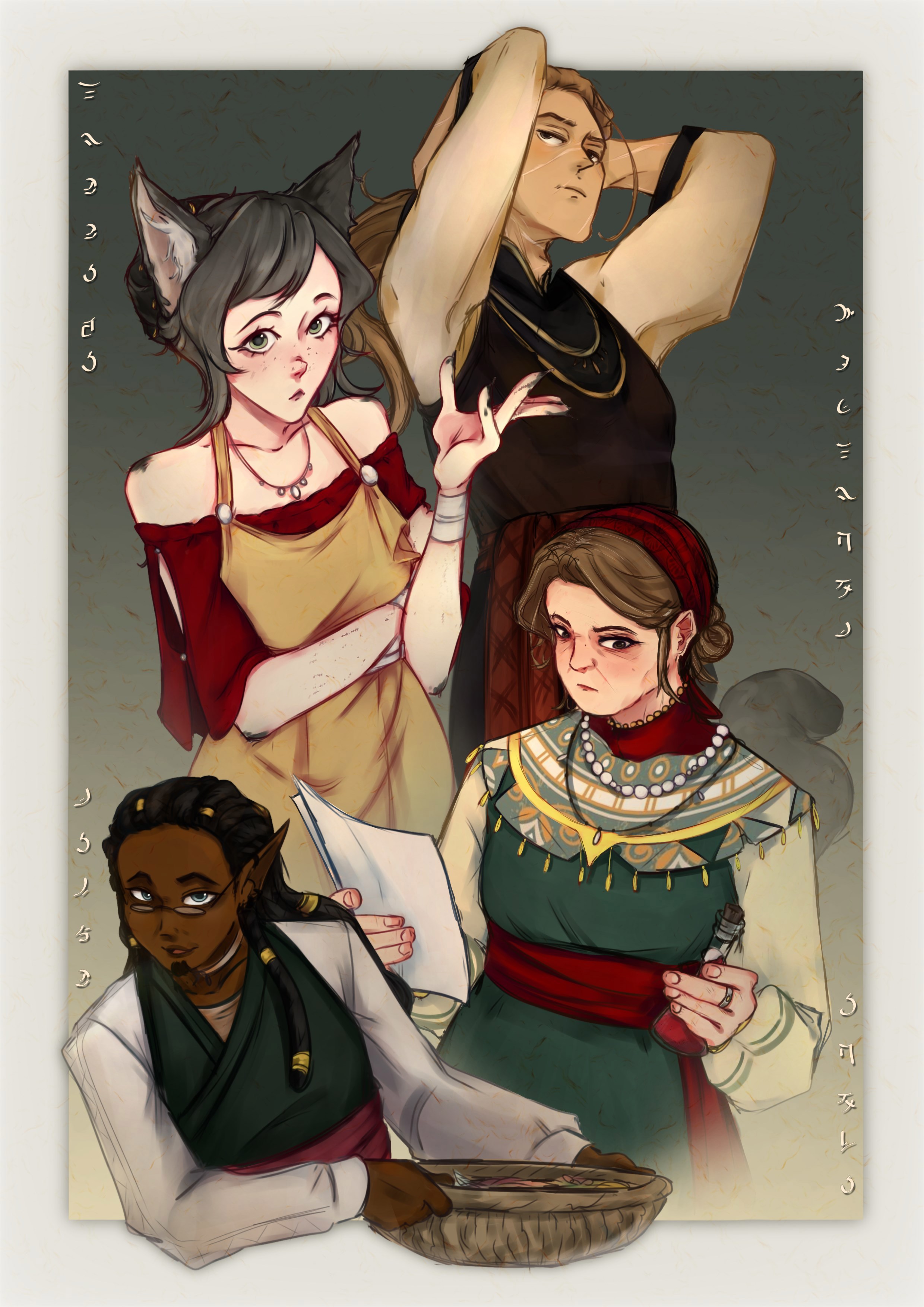 Иллюстрация, изображающая персонажей из второй книги. Они - Касраны. Одни из самых важных людей в стране, после Советника, конечно. Однако кто такой Советник, без его верных помощников, не так ли?