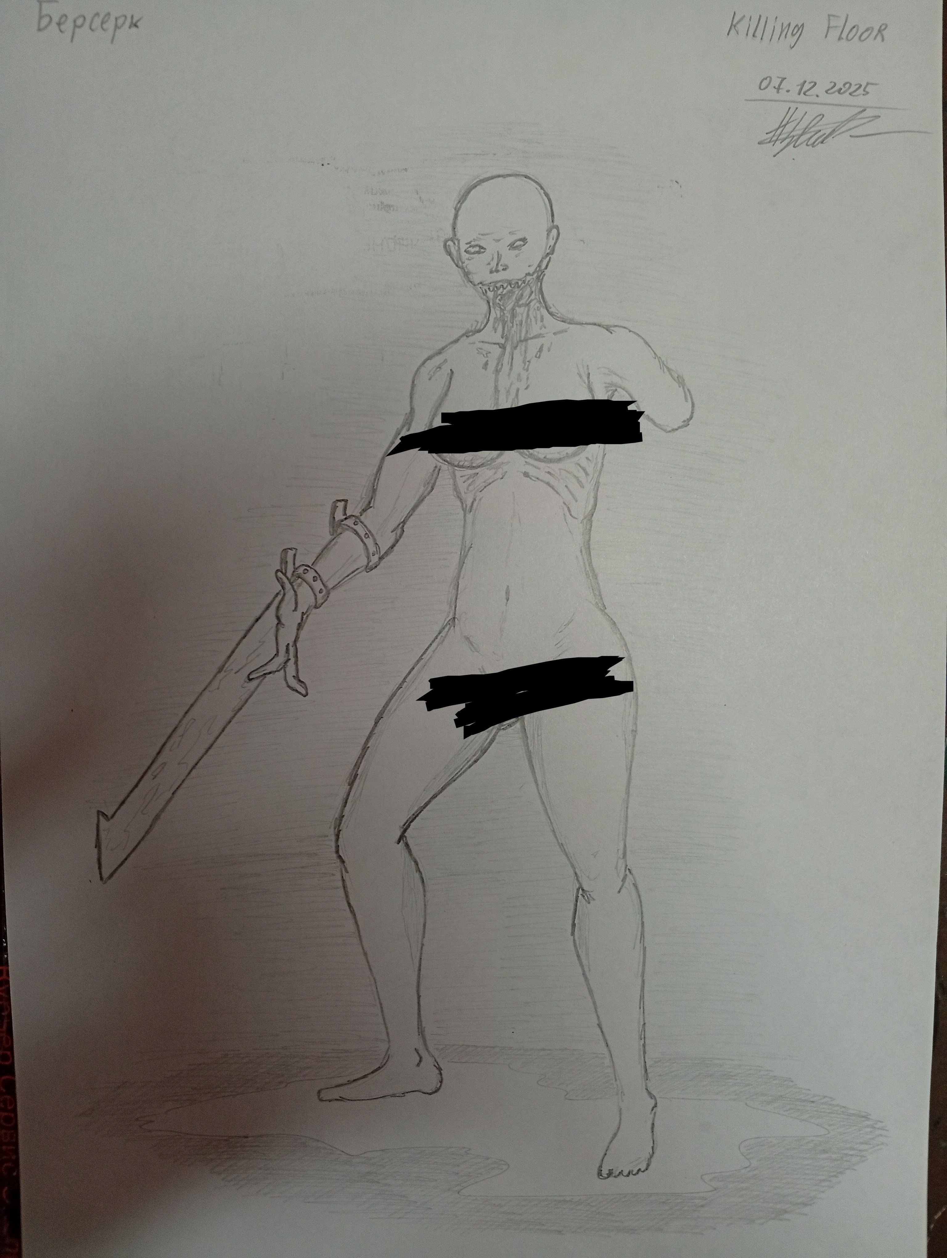 Берсерк из игры Killing Floor. Женская версия Автор: Дмитрий Шухов монстр, рисунок карандашом, фанарт 9 Пожаловаться