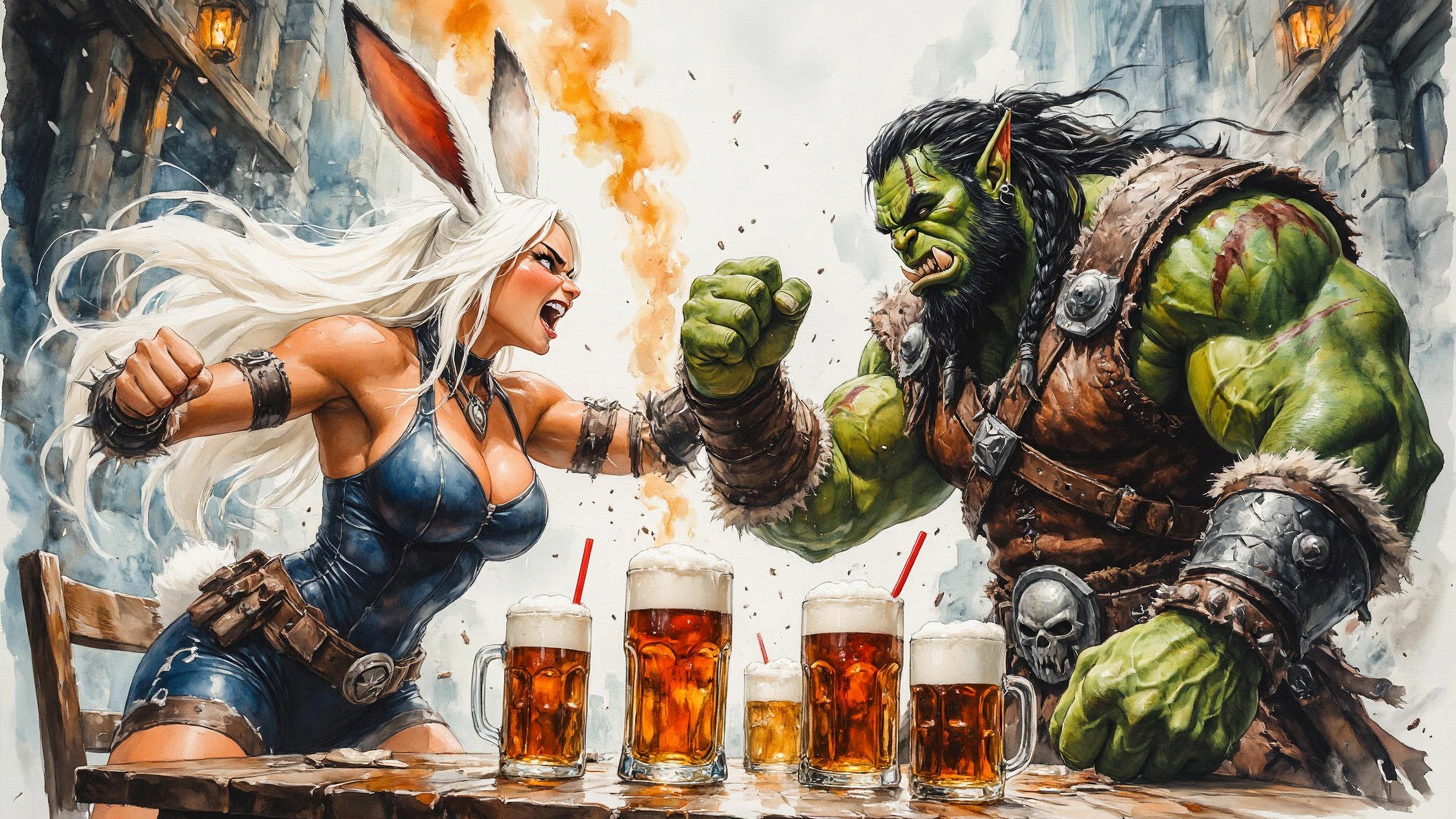 Ну вот и познакомились , это так по домашнему - слово за слово, кулаком по столу...Сам представился, как звать ушастую...хе-хе ,незнакомку осведомился. Теперь слегка побаливает челюсть, а новую знакомую Мируко звать, чудное имя. И похоже она не местная, то-есть совсем - после перехода орков между мирами, было с чем сравнивать.