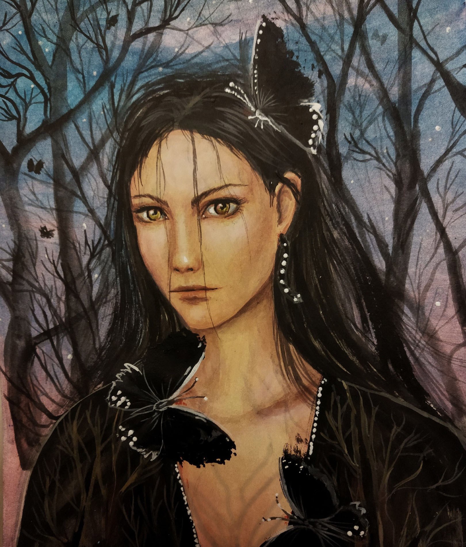 Траурницы Автор: Джу Шелс девушка, живопись акрилом, обработка в фш, акварельная бумага 25 Пожаловаться