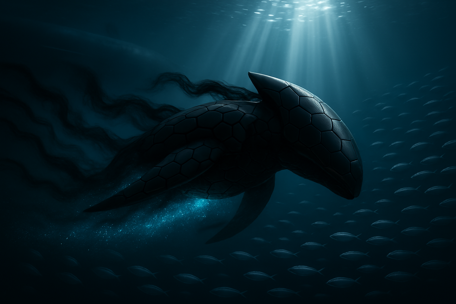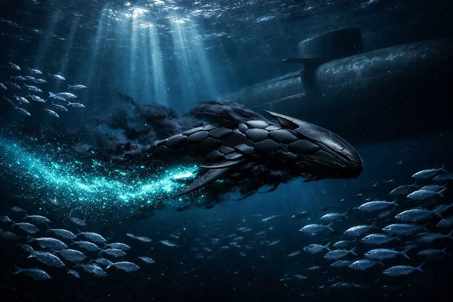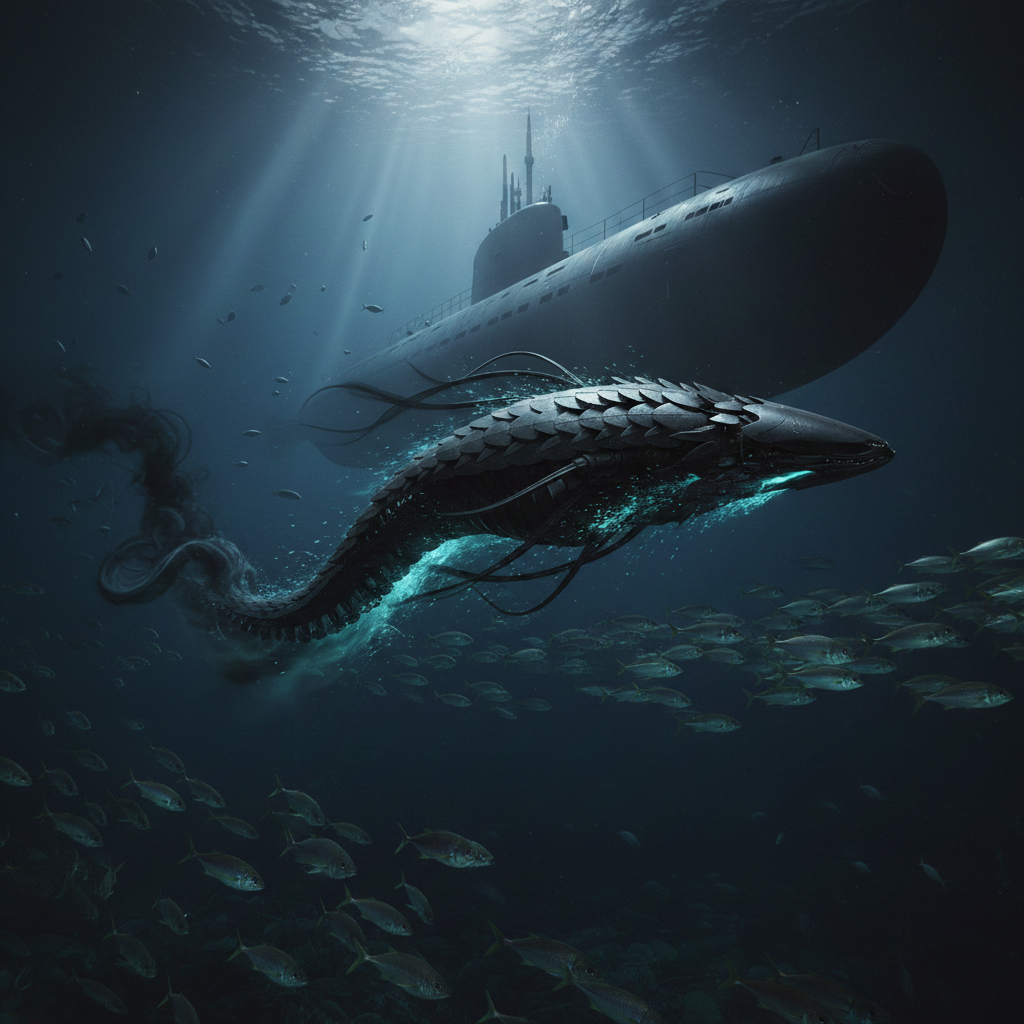 Джинн подплыл к корпусу в районе кормовой части, где располагался один из технических шлюзов — люк для выхода водолазов или запуска беспилотных аппаратов. Он коснулся определённой точки на корпусе. Внутри лодки, в центральном посту, на пульте замигал зелёный индикатор «ВНЕШНИЙ ЗАПРОС. ДОСТУП 7-БЕТА». Дежурный офицер, не отрываясь от монитора, нажал кнопку подтверждения.