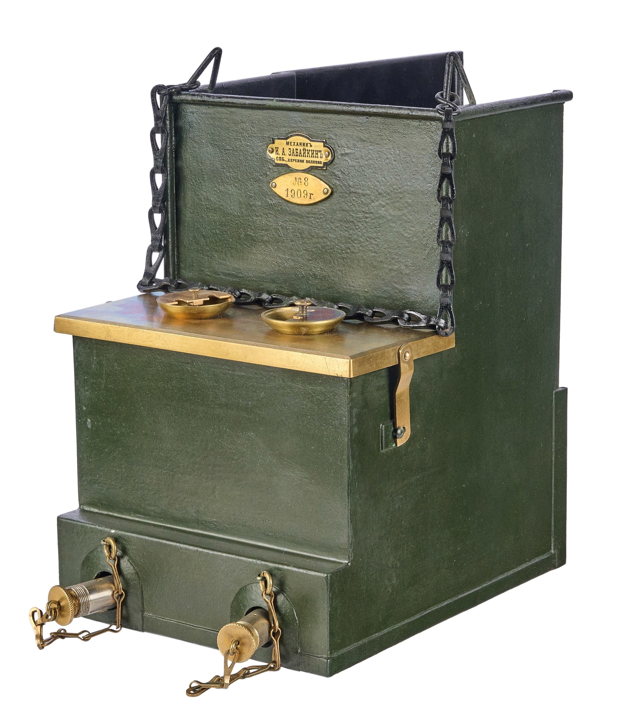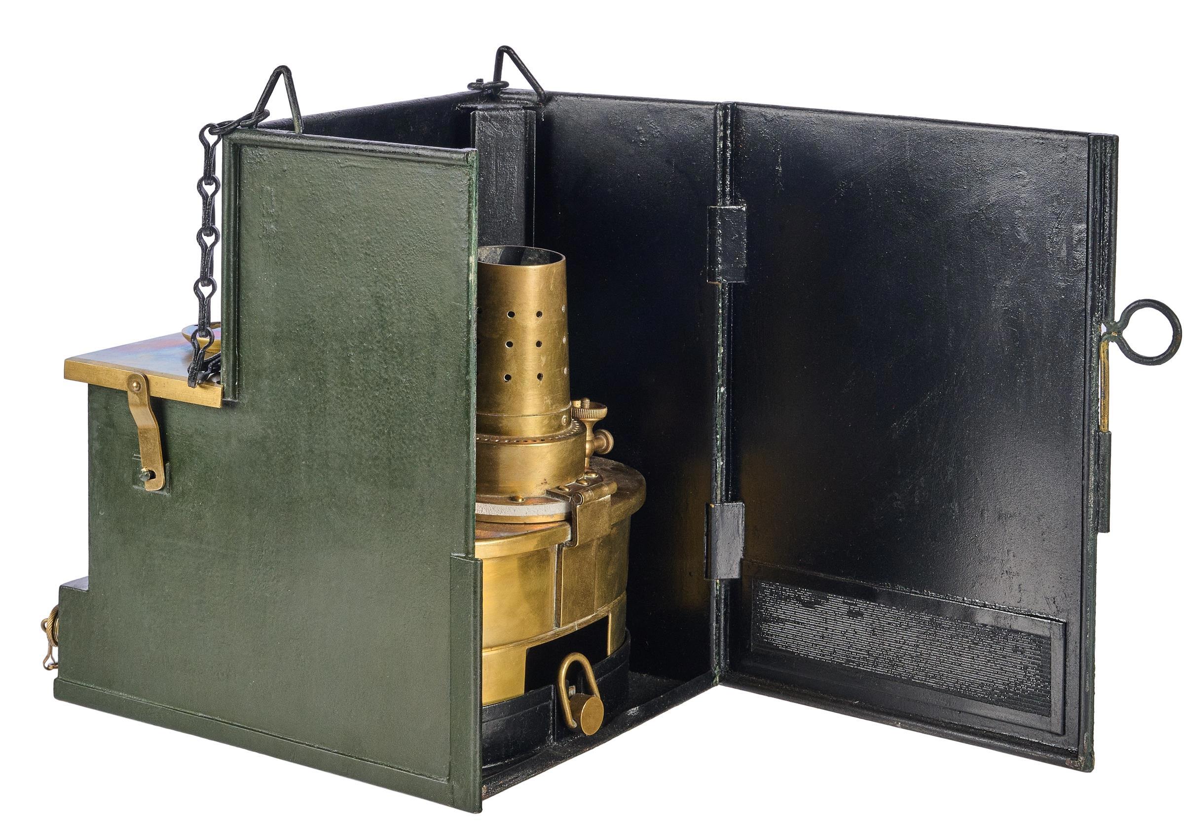В качестве источника света использована спиртовая лампа. К ее горелке с помощью резиновых груш с трубками подавался порошок магния белого и красного цвета. Для переноски служил кожаный футляр, в комплект также входили запасные емкости для порошка и спирта.