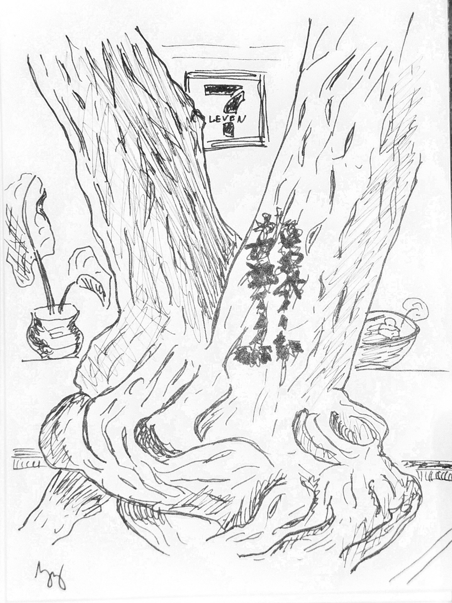 Это чудо света выросло где выросло, а потом уже вокруг него построили улицу Рангнам, проложили тротуар, построили здания... В четыре обхвата ствол, не меньше!