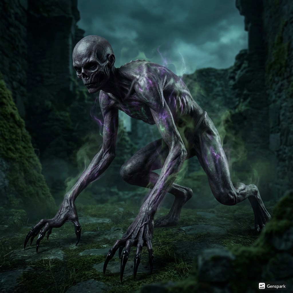 Твари, рождённые из сгустков магического загрязнения. Напоминают тощих, безволосых гончих с непропорционально длинными и острыми передними конечностями. Не обладают выдающейся силой, но невероятно быстры, ядовиты и охотятся стаями. Способны к мгновенным коротким «рывкам» в тени.
