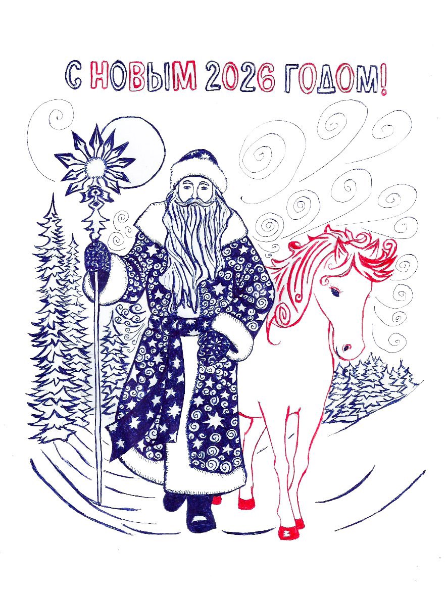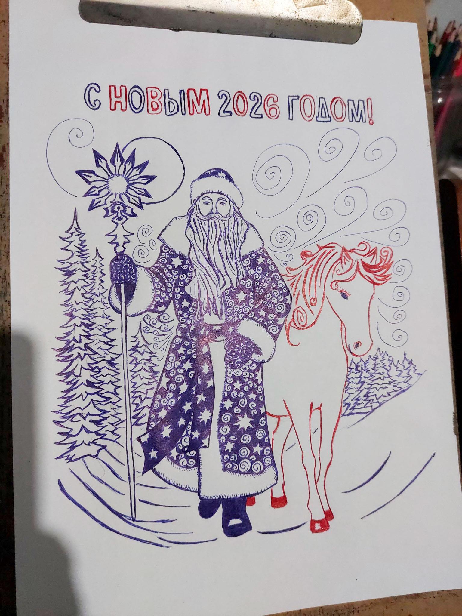 Новогоднее Автор: Светлана Кузнецова С Новым годом! праздник, шариковые ручки, 2026, мои рисунки, новый год 95 Пожаловаться