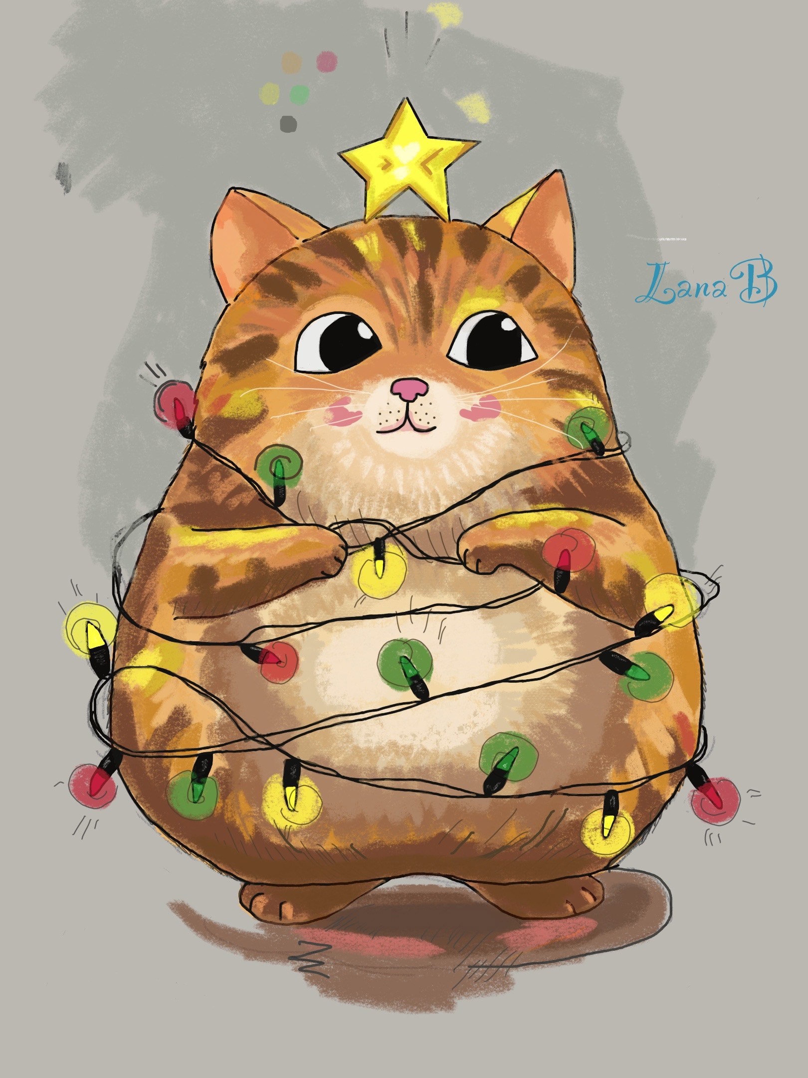 Новогодний котик Автор: Завьялова Светлана Рисовала по пошаговым картинкам) компьютерная графика, рисунок, цифровая живопись, диджитал, иллюстрация, арт 21 Пожаловаться