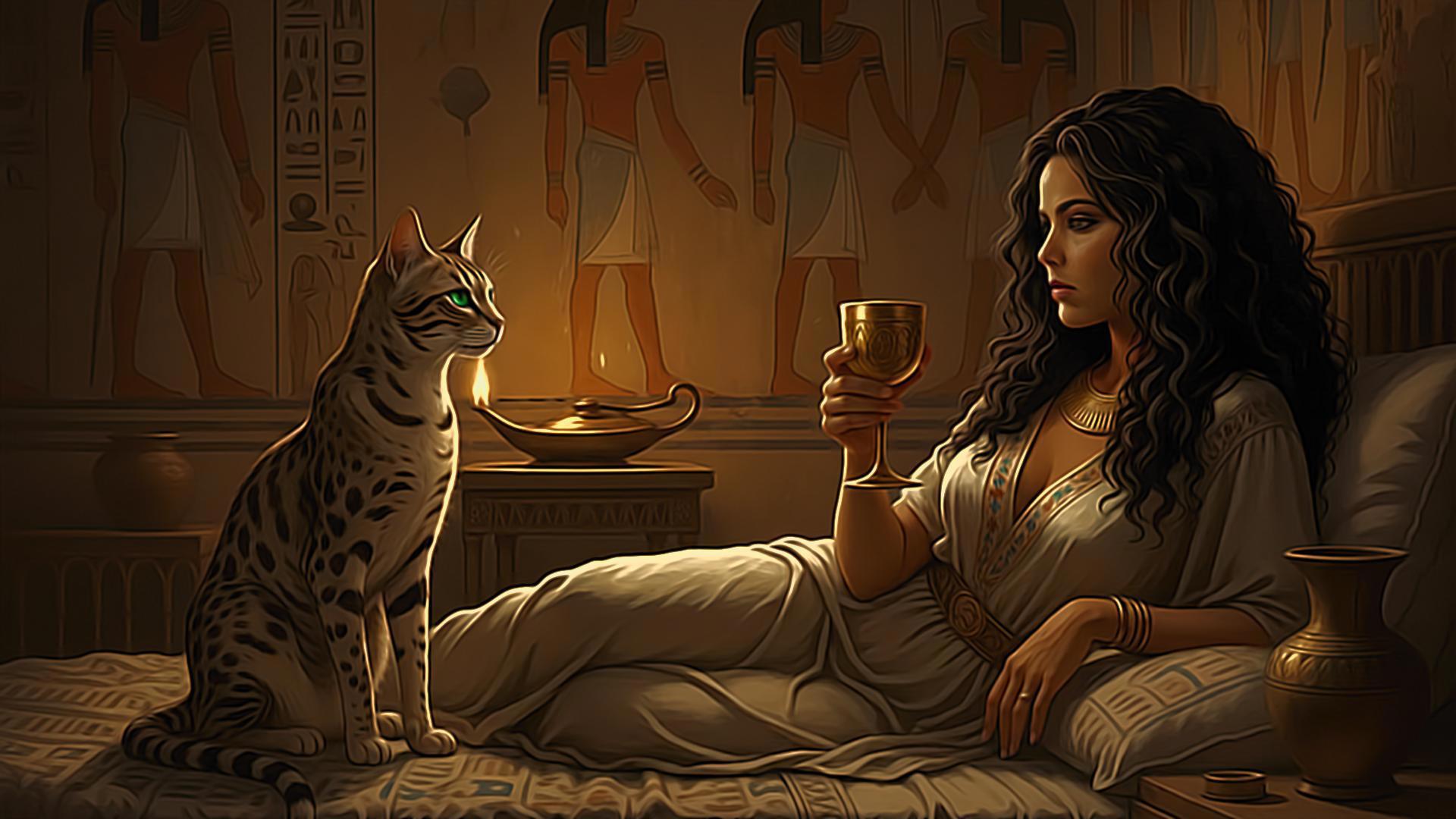 Наконец кот вцепился зубами в тонкий поясок и потянул его к себе, отчего Миухетти вздрогнула и едва не расплескала чашу с вином, которую держала обеими руками.