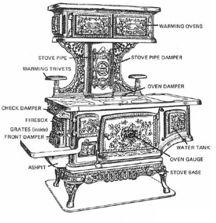 В Америке в 1860-х гг. стали входить в моду шестиплитные или коробчатые печи. Это были первые печи, разработанные с закрытой духовкой специально для приготовления пищи.