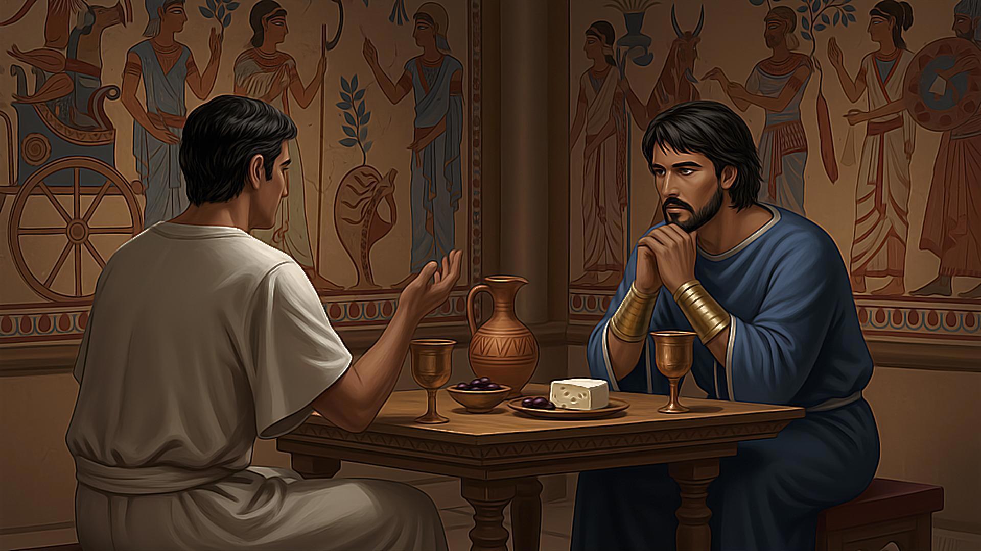 Вот сидит Хастияр в глубокой печали, слушает рассказ об этом в исполнении египетского посла Ассуапи.