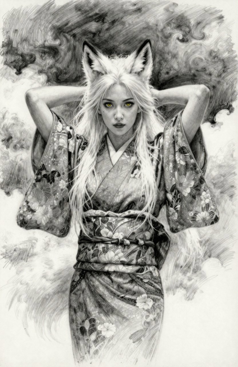 Kitsune Автор: Виктор Вит творчество, фэнтези, авторский арт, арт, девушка, компьютерная графика, нейросеть, персонажи, иллюстрация 73 Пожаловаться