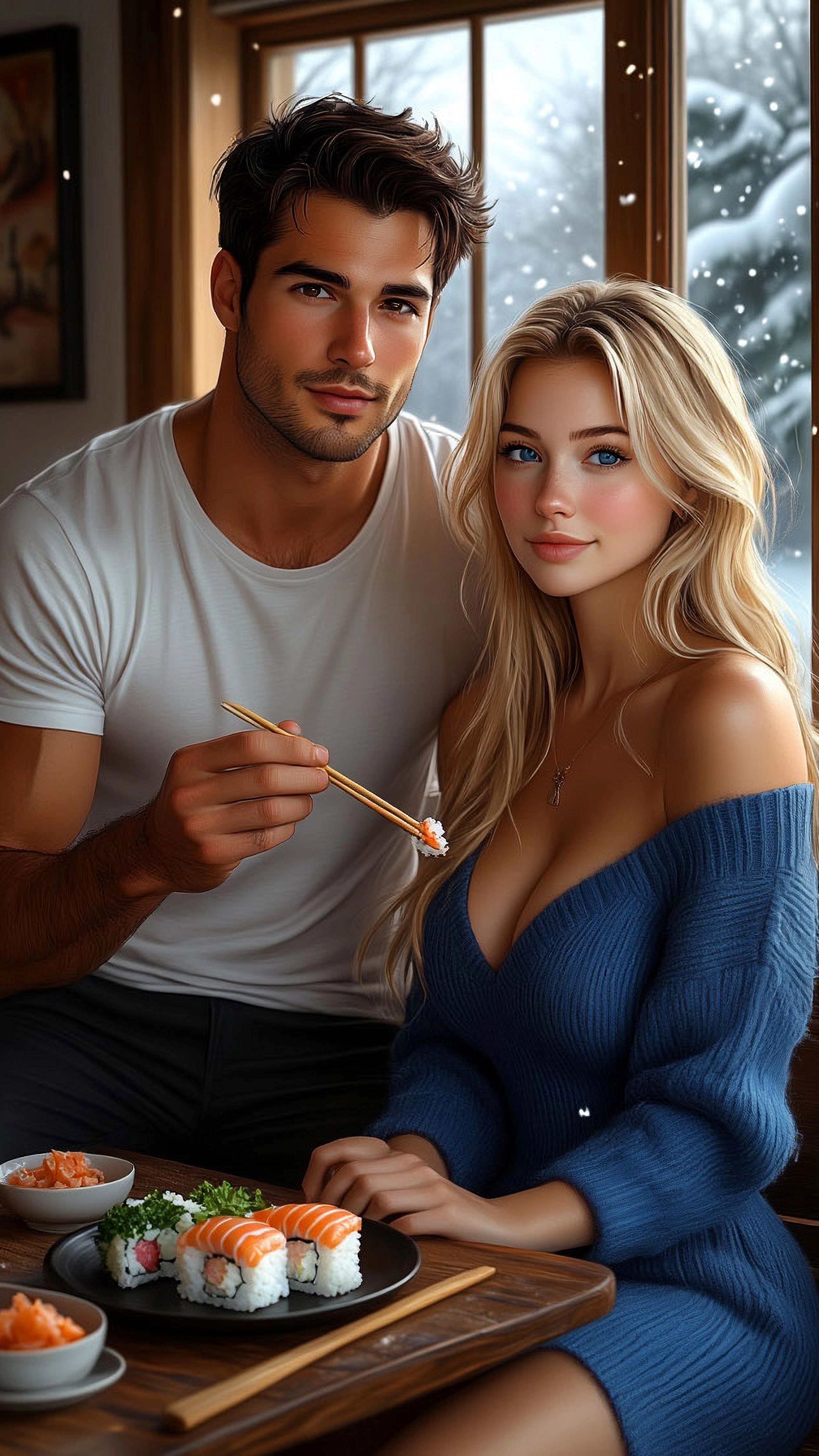Обед Автор: Mary Steel Злата и Лев кушают суши из книги "Отмороженная" рисунок, фэнтези, иллюстрация, книжная иллюстрация, арт, мужчина и женщина, влюбленные, любовный роман, любовь 18 Пожаловаться