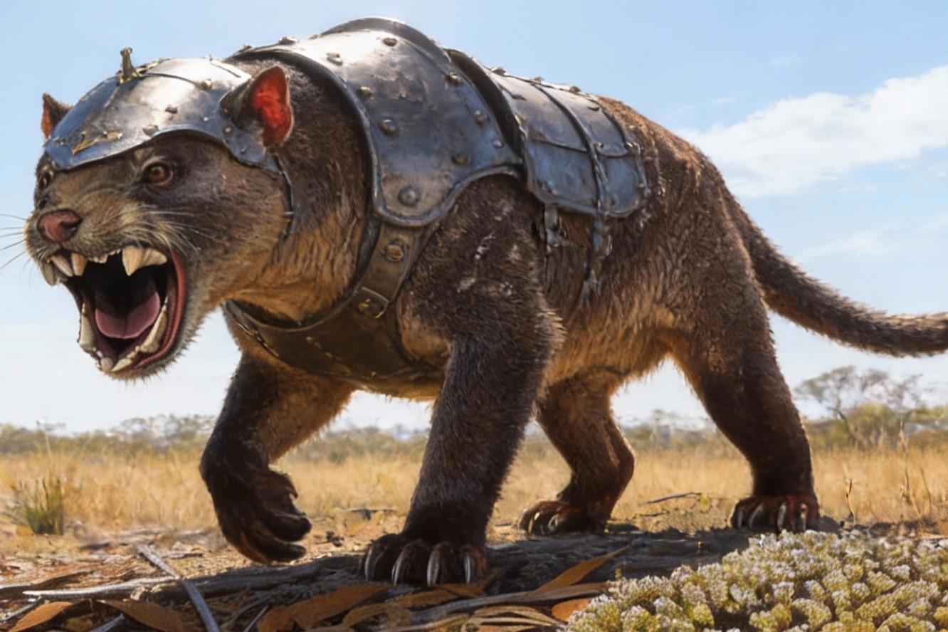 Что из мегафауны Австралии могли использовать эльфы в качестве боевых животных? Например, сумчатого льва или тилаколева. Мог достигать в длину около полутора метров и 70 см высоты в холке. Вес животного составлял примерно 110 кг, однако единичные находки черепов позволяют говорить о существовании особей массой более 150 кг. Сумчатый лев был чрезвычайно крепко сложенным хищником с хорошо развитой мускулатурой. Особенно его зубы впечатляют, необычное решение.
