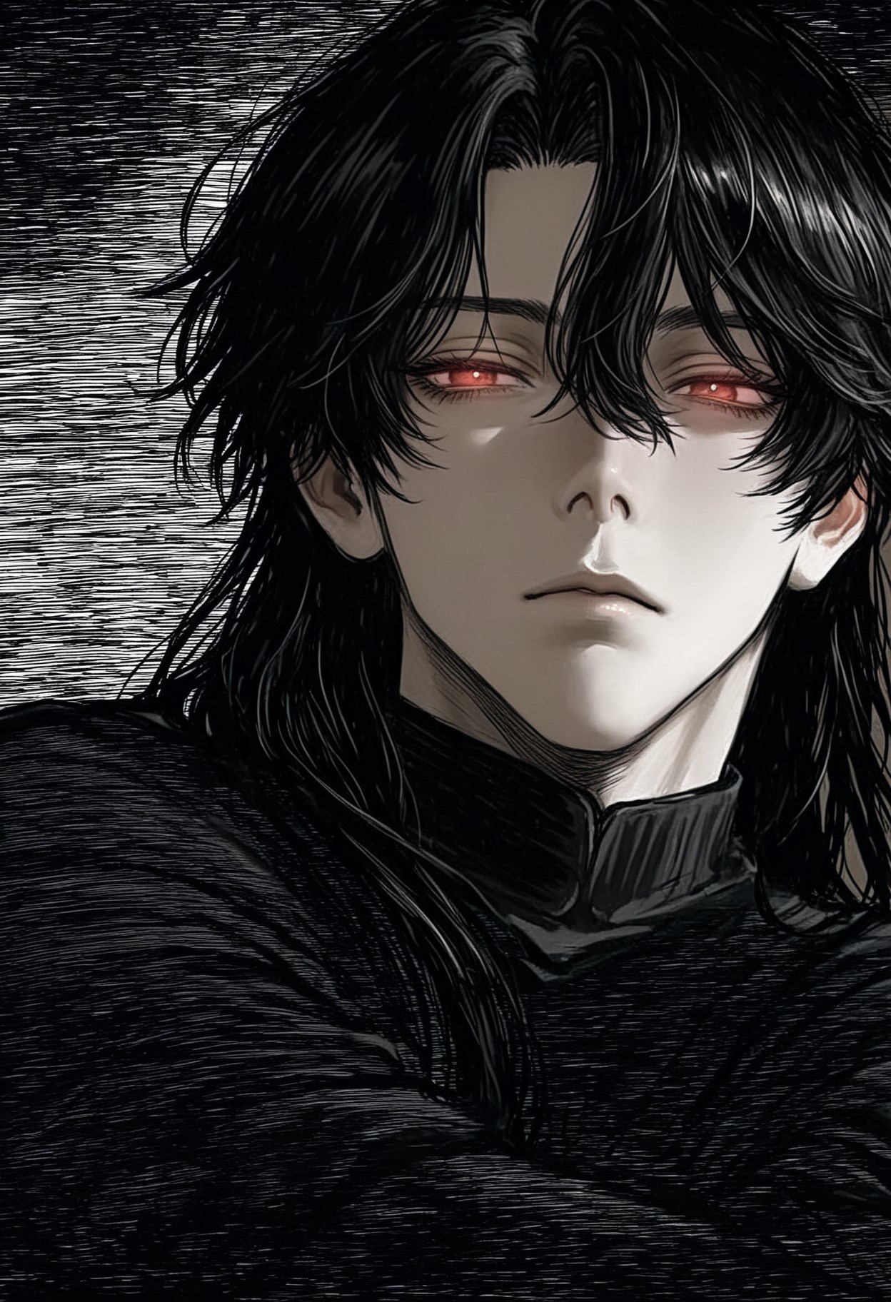 Второй вариант -- предложение нейросети. Вот тут уже более менее есть представление статного серьезного мужчины, чей взгляд алых глаз действительно должен пленить главную героиню.