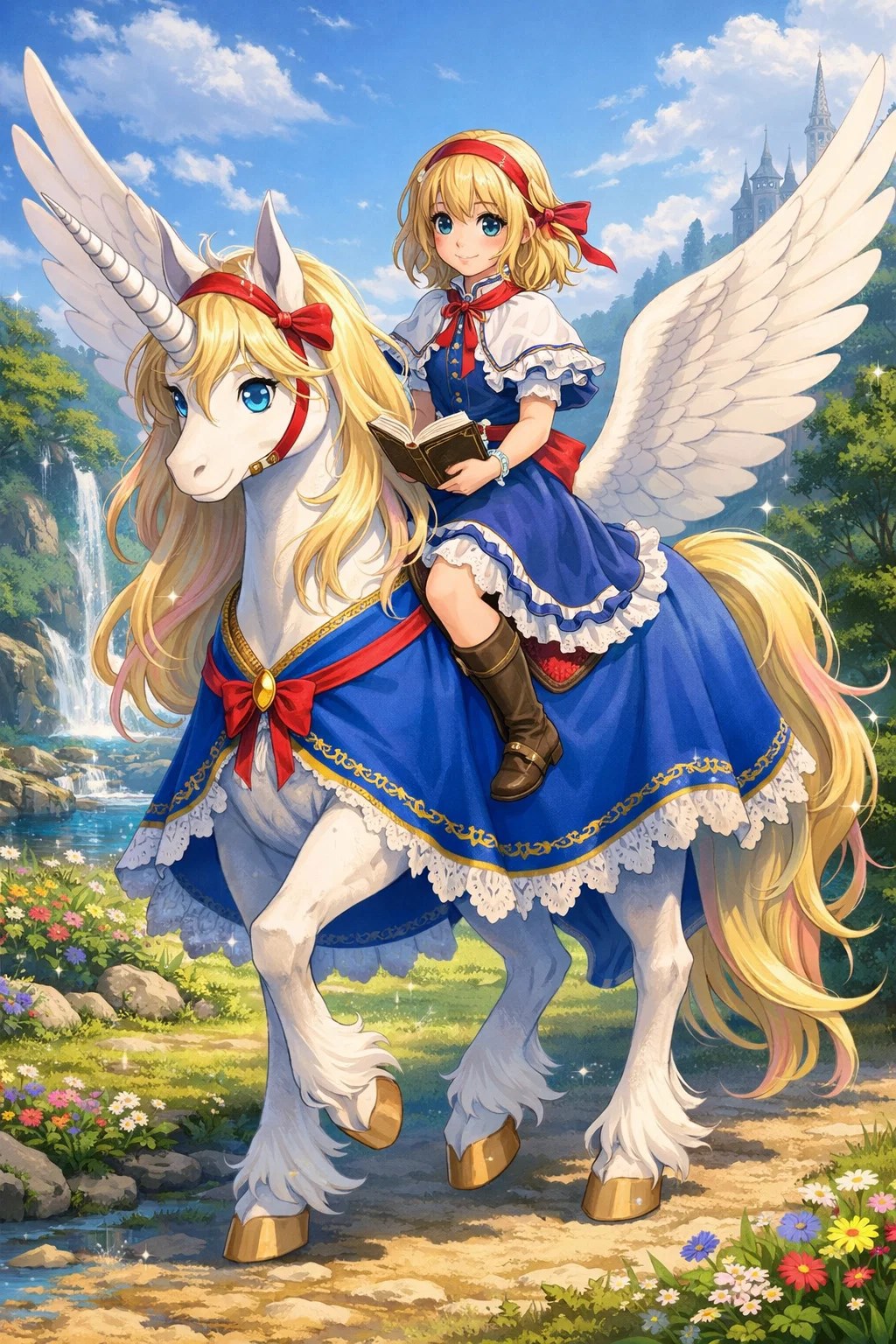 На самом деле это кукла в виде лошади с рогом и крыльями чьи кукольные части умело скрыты той, что её создал.