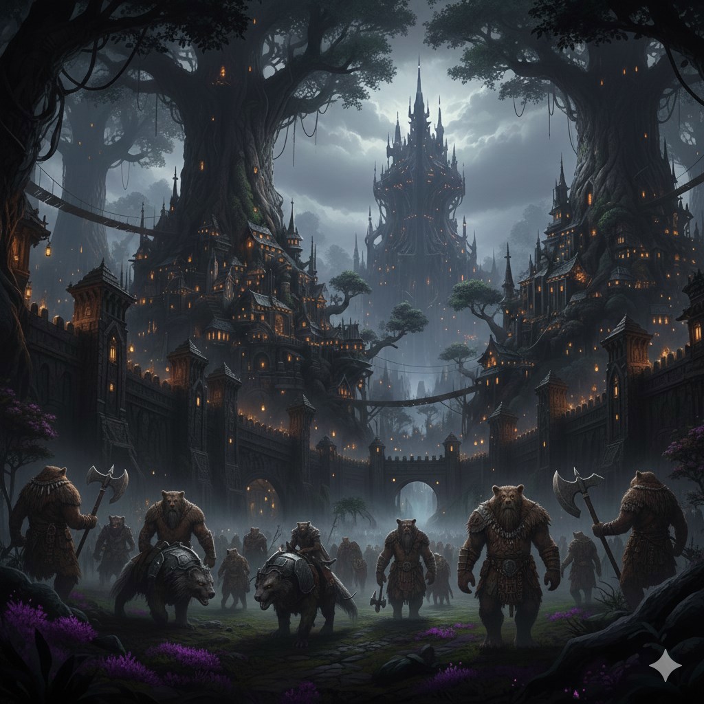 В центре их культуры стоит Баалум — символ или лидер (как тот, что на фоне леса с поддонами/платформами), который олицетворяет единство леса и народа.