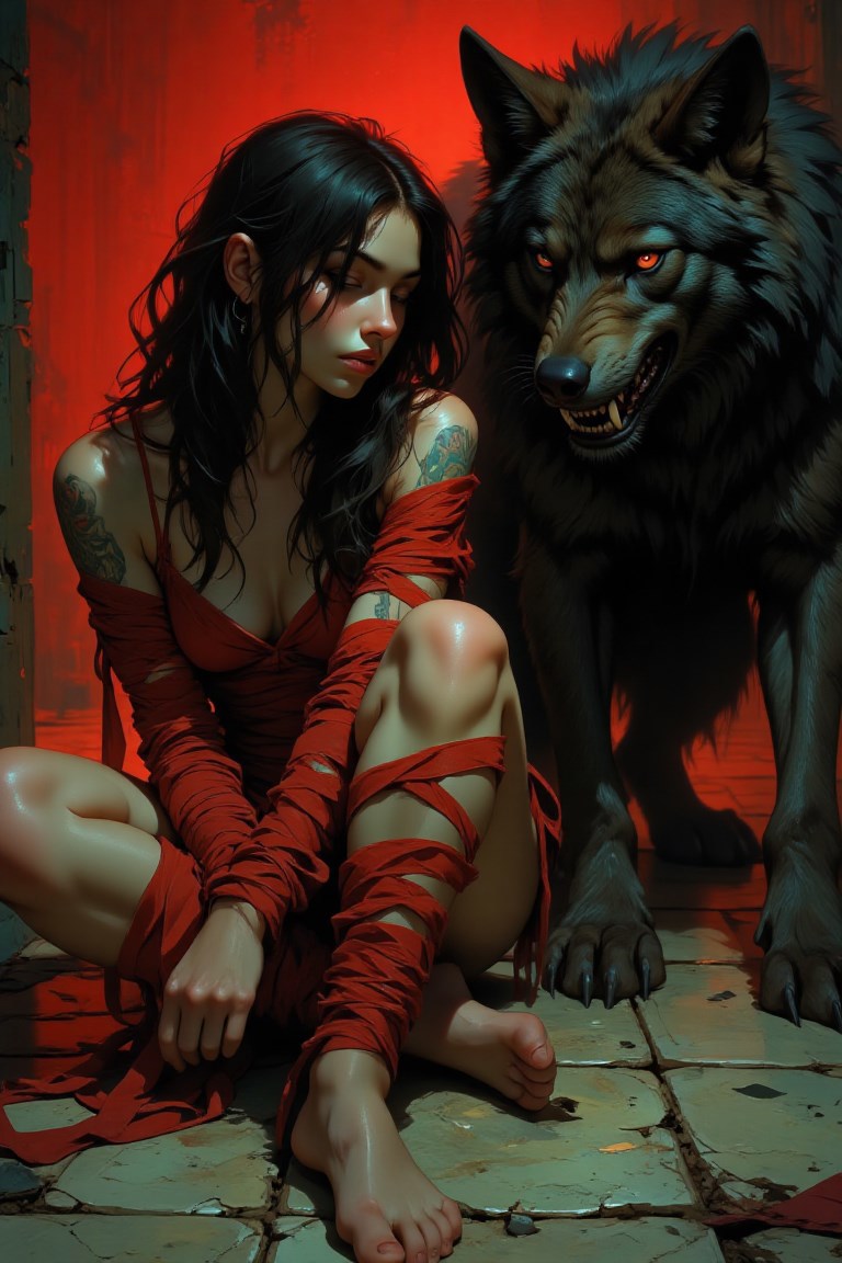 Красная мгла Автор: wall-24 фэнтези, арт, мистика и ужасы, оборотни, волк, иллюстрация, персонажи 59 Пожаловаться