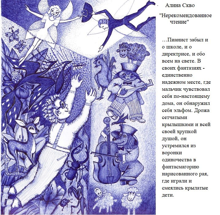 …Пианист забыл и о школе, и о директрисе, и обо всем на свете. В своих фантазиях - единственно надежном месте, где мальчик чувствовал себя по-настоящему дома, он обнаружил себя эльфом. Дрожа сетчатыми крылышками и всей своей хрупкой душой, он устремился из воронки одиночества в фантасмагорию нарисованного рая, где играли и смеялись крылатые дети. Повесть здесь https://author.today/work/273270