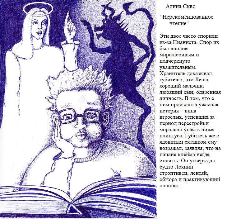 Пианист припомнил, как однажды ему в руки попала «Критика чистого разума» философа Иммануила Канта. Он её из любопытства полистал и понял только то, что ничегошеньки не понял. Теперь же он слушал собственные мысли, как радиоспектакль, с твердым убеждением, что его ум существует сам по себе и в нем, Лешке Лохнине, нуждается так же, как собака в пятой ноге… Повесть здесь https://author.today/work/273270