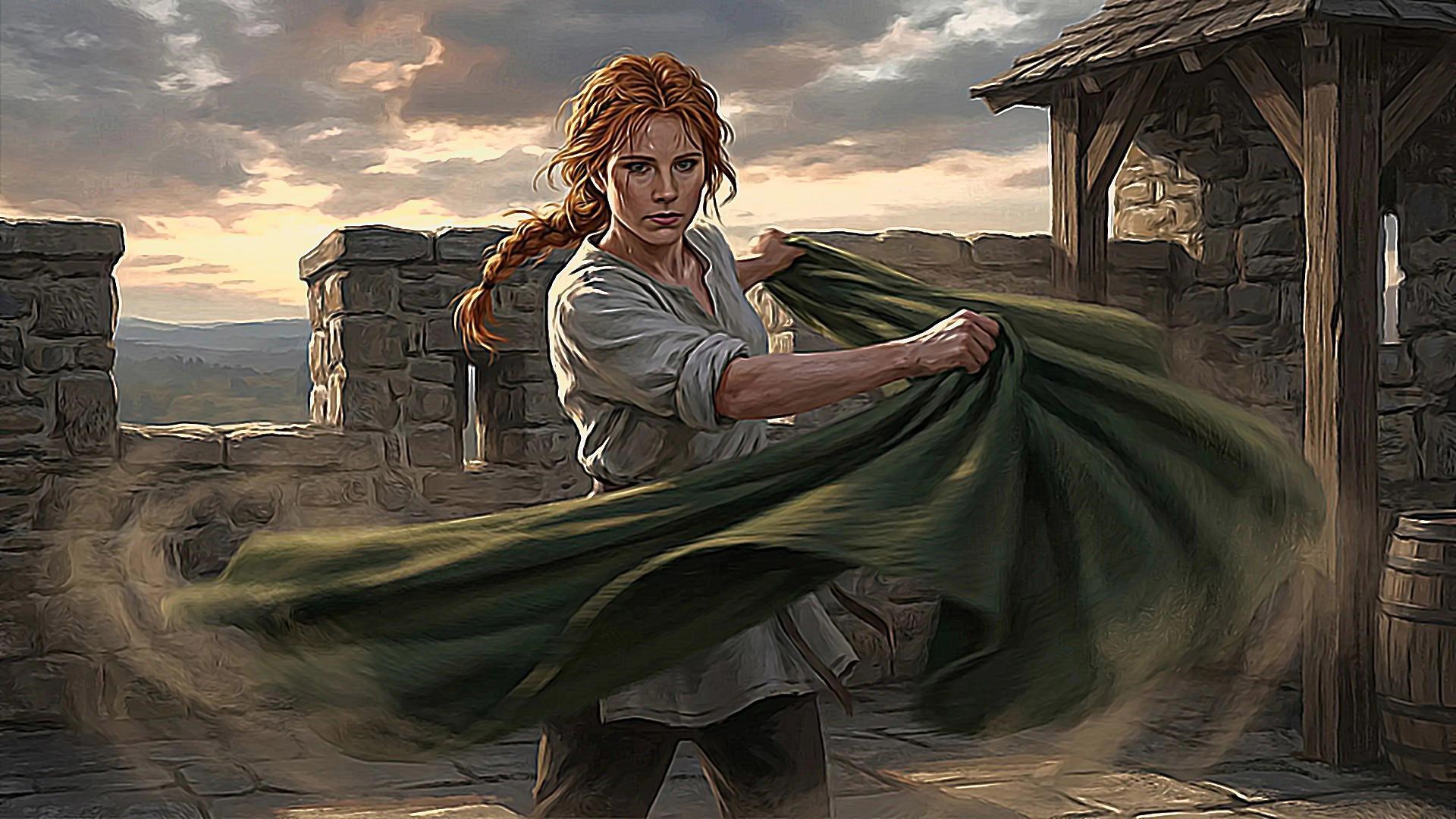 Крутящееся полотно разметало мусор по углам, разгоняло ветер. Женщина глянула сверху вниз на глуповато-изумленные лица тех, кто за ней наблюдал. Таковых оказалось не меньше десятка – стража, пара дворовых слуг, крестьянин с тощим мешком, конюх, кузнец (у которого женщина взяла граненый лом для вращения над головой) еще какие-то люди. Елена хмыкнула, подумав, что теперь ее точно назовут колдуньей – очевидно же, машет она тряпкой не просто так, а во исполнение какого-то ритуала.