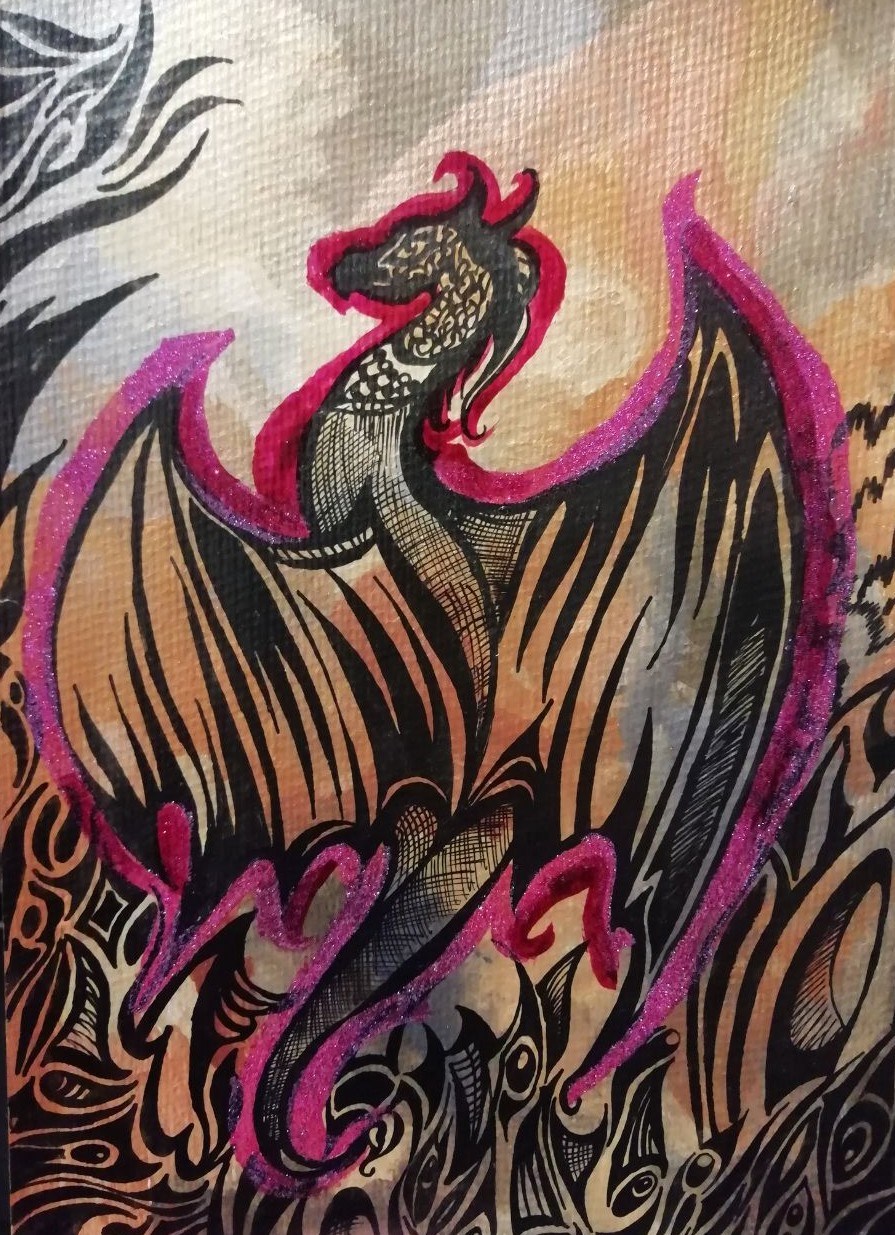 Бумага, акрил, лак, тушь.