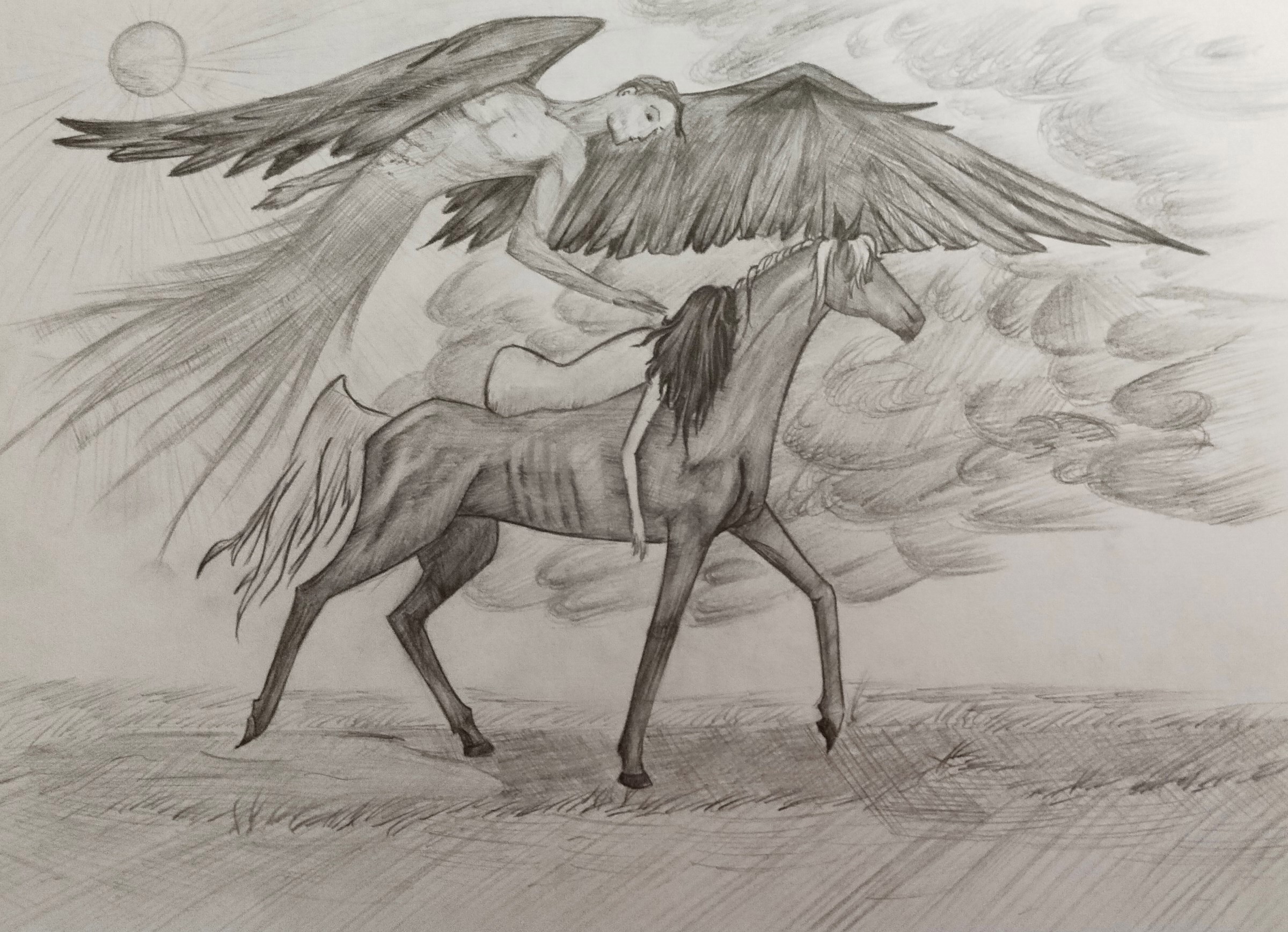 Ангел смерти Автор: Nulika Voino рисунок, рисунок карандашом, смерть, творчество, авторский арт, ангел, крылья, всадник, девушка 3 Пожаловаться