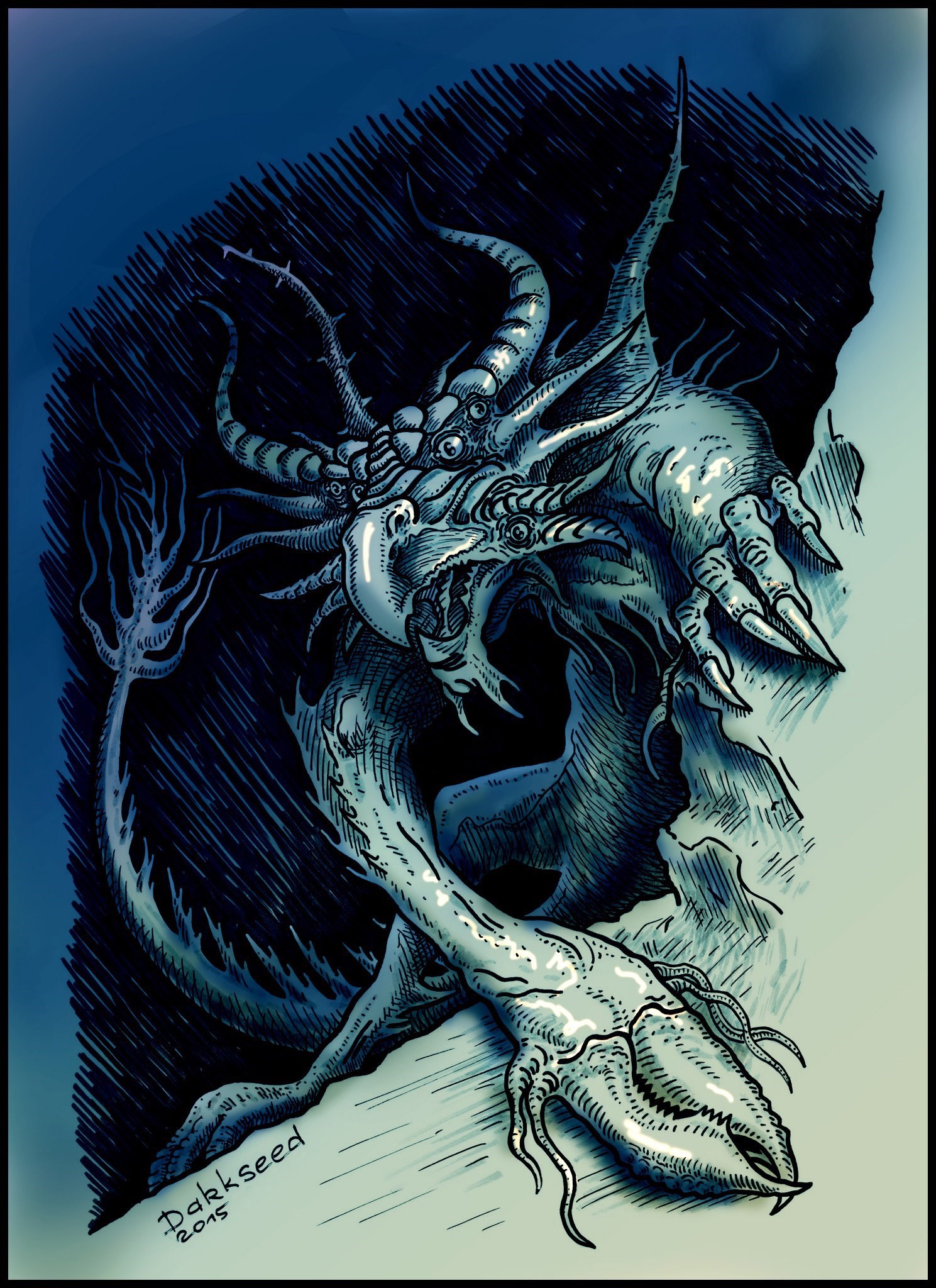 Кайдзю Автор: Игорь Авильченко Неинвертированный вариант рисунка с добавлением цвета. рисунок, фантастика, иллюстрация, маркеры, графика, другой мир, кайдзю 27 Пожаловаться